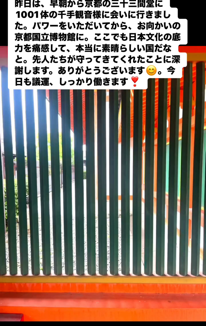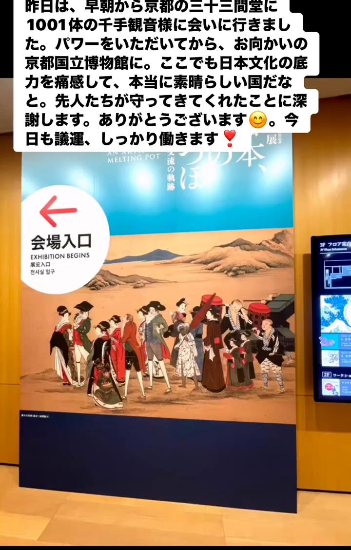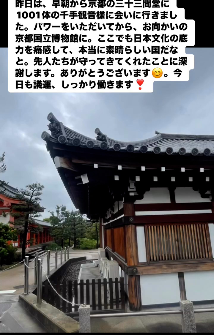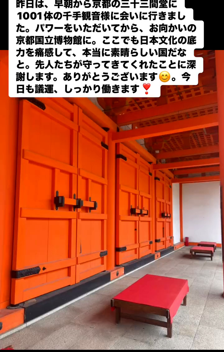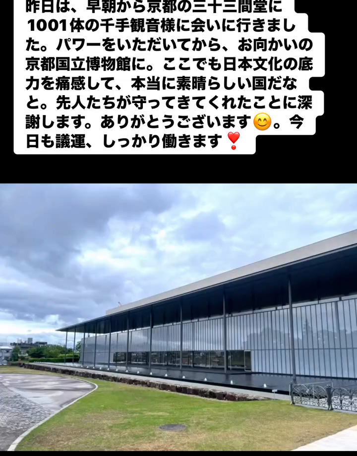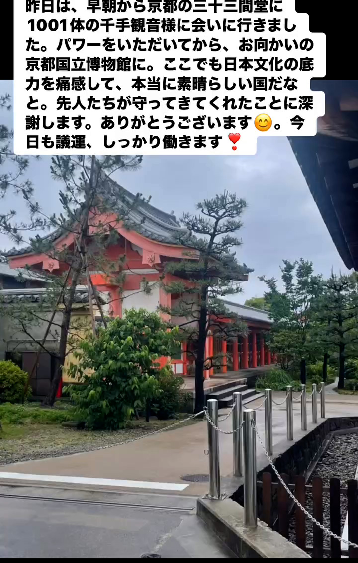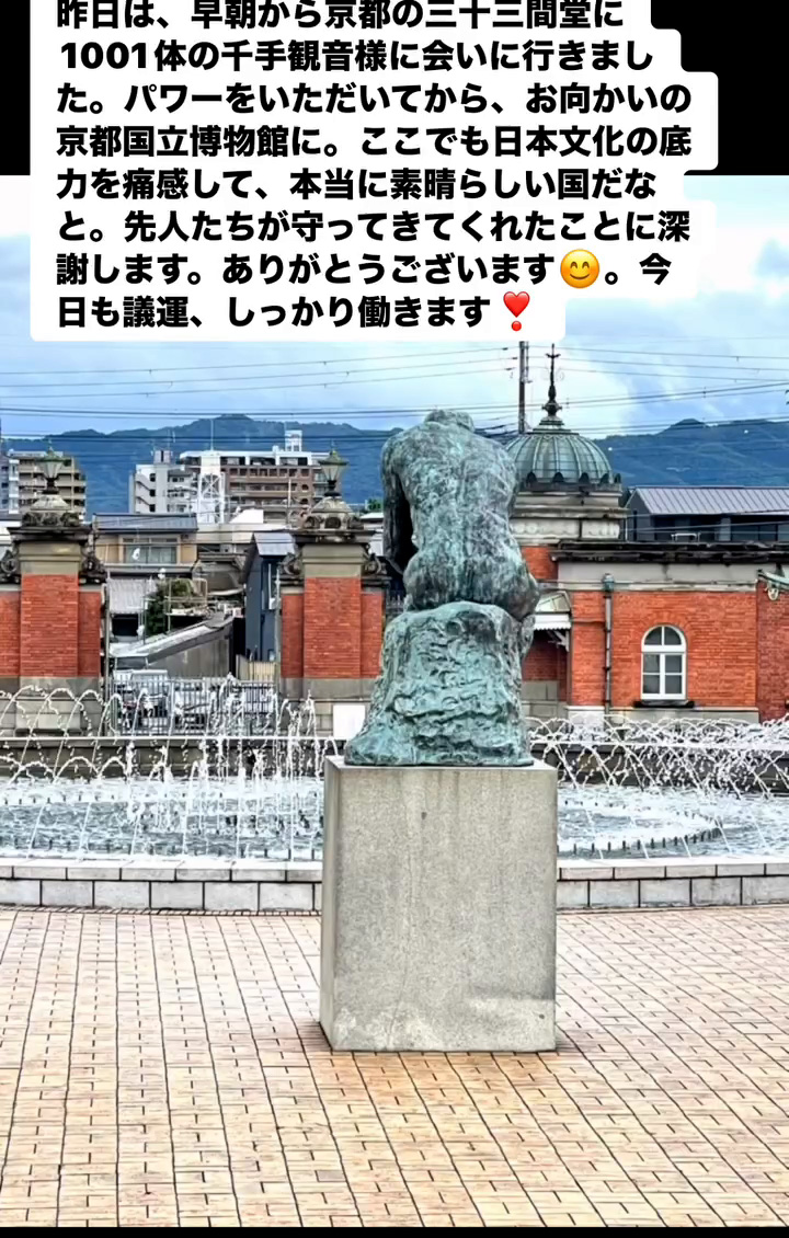 昨日は、早朝から京都の三十三間堂に1001体の千手観音様に会いに行きました。パワーをいただいてから、お向かいの京都国立博物館に。ここでも日本文化の底力を痛感して、本当に素晴らしい国だなと。先人たちが守ってきてくれたことに深謝します。ありがとうこざいます☺。今日も議運、しっかり働きます❣