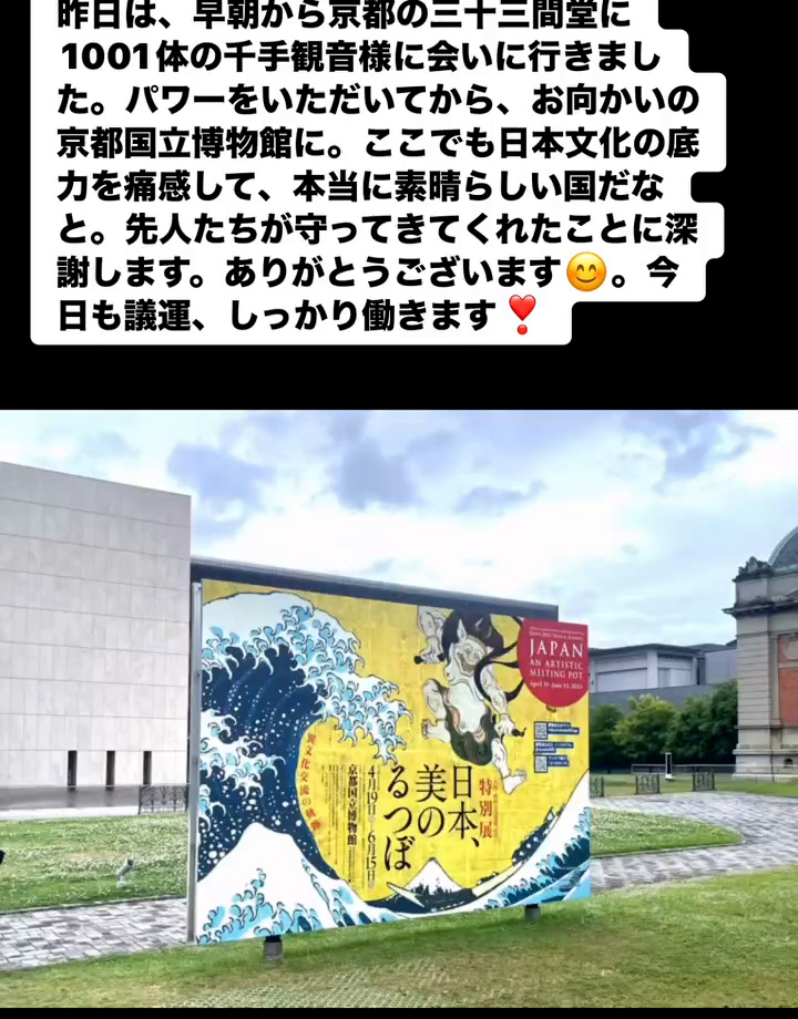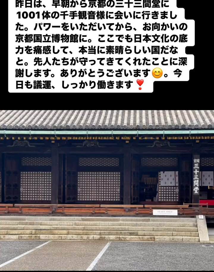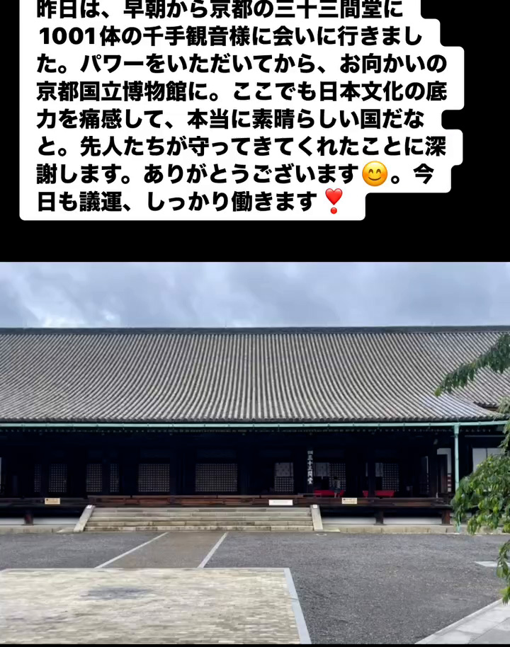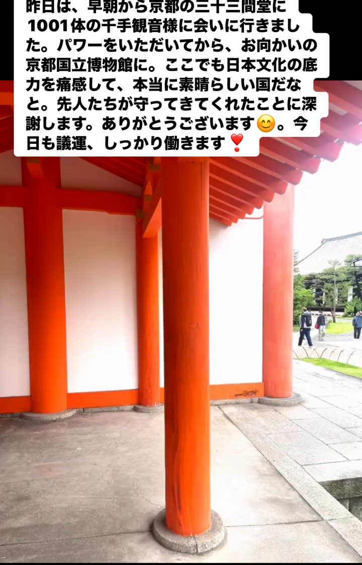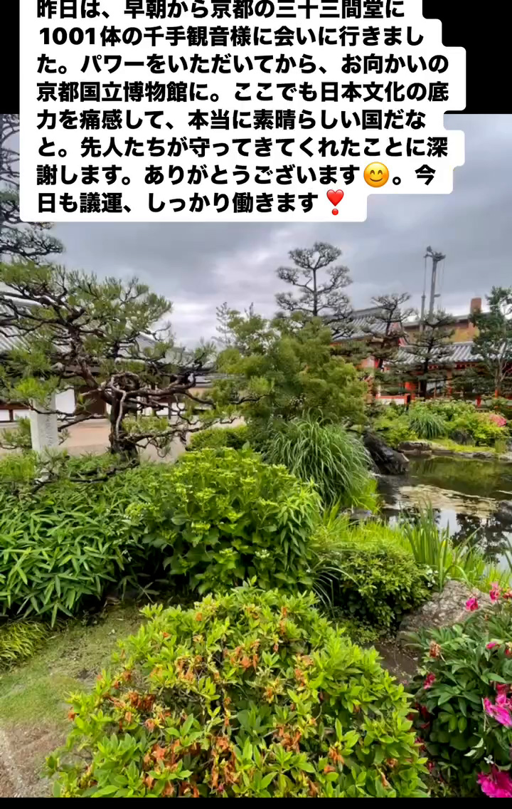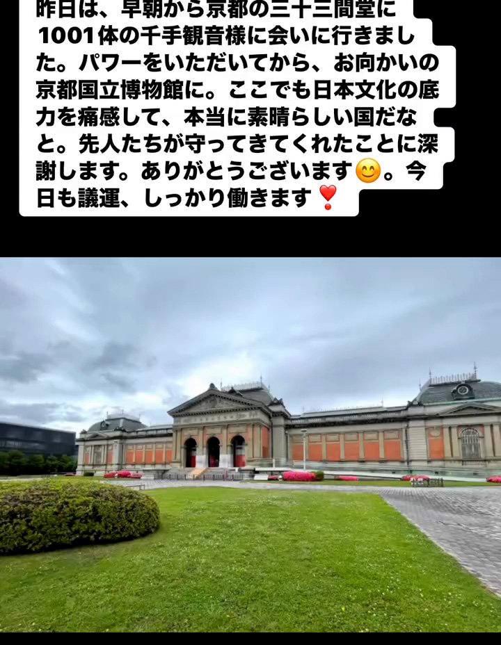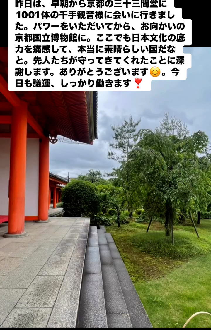 昨日は、早朝から京都の三十三間堂に1001体の千手観音様に会いに行きました。パワーをいただいてから、お向かいの京都国立博物館に。ここでも日本文化の底力を痛感して、本当に素晴らしい国だなと。先人たちが守ってきてくれたことに深謝します。ありがとうこざいます☺。今日も議運、しっかり働きます❣