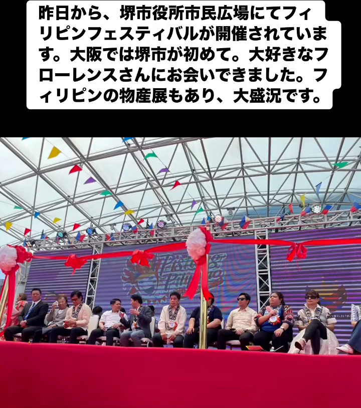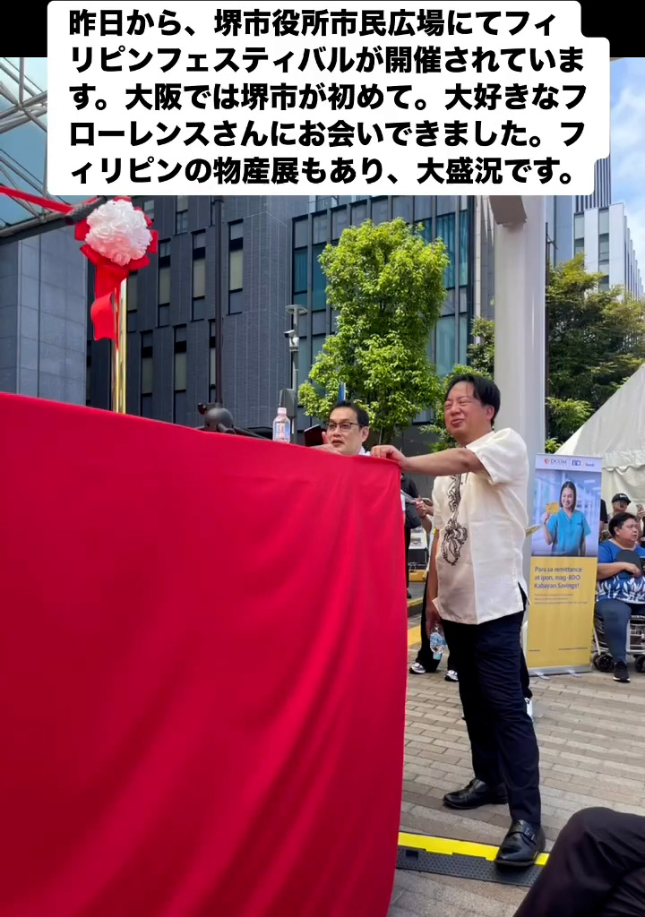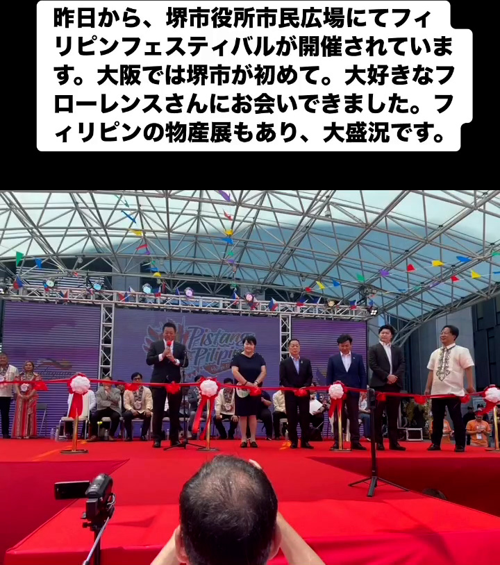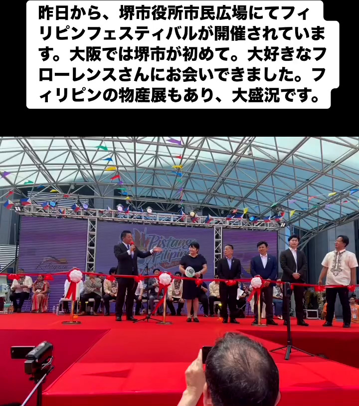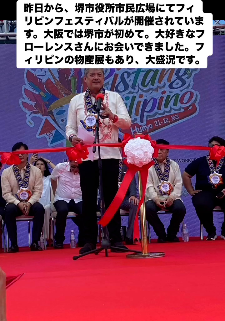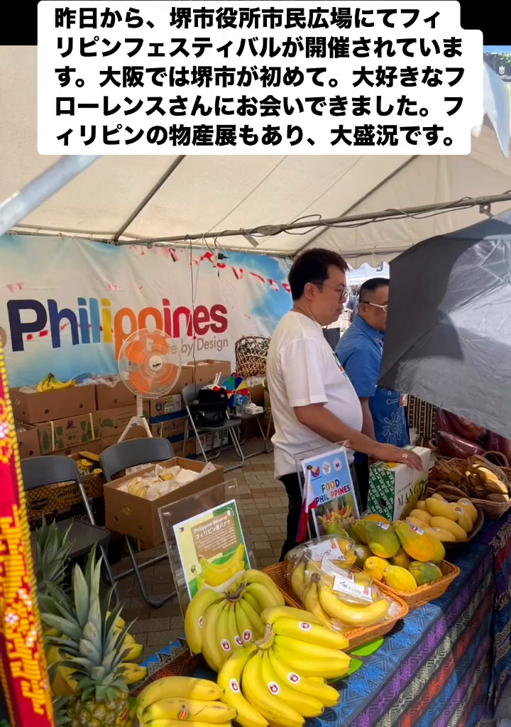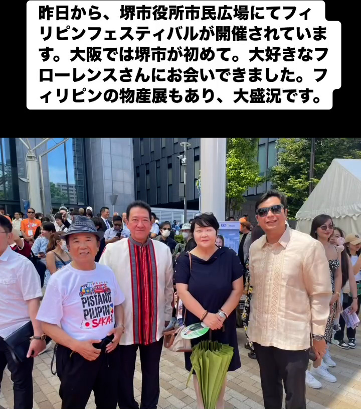 フィリピンフェスティバル 6月22日 Posted on 2025年6月22日 07:54:012025年9月9日 昨日から、堺市役所市民広場にてフィリピンフェスティバルが開催されています。大阪では堺市が初めて。大好きなフローレンスさんにお会いできました。フィリビンの物産屋もあり、大盛況です。 のりこの活動日記
