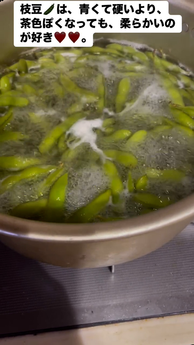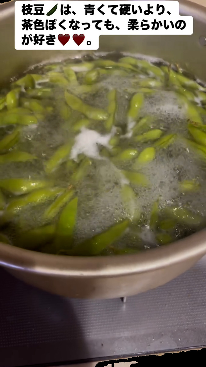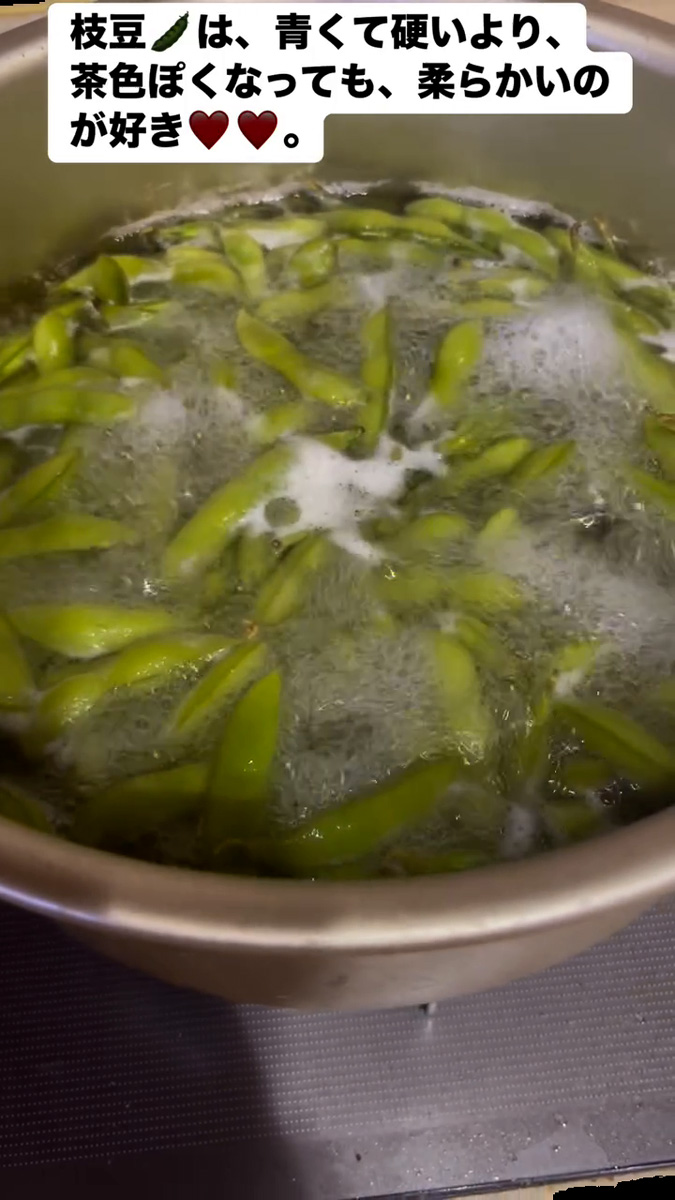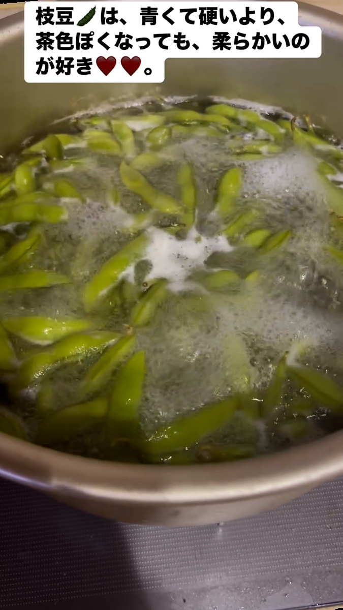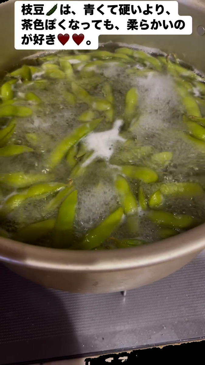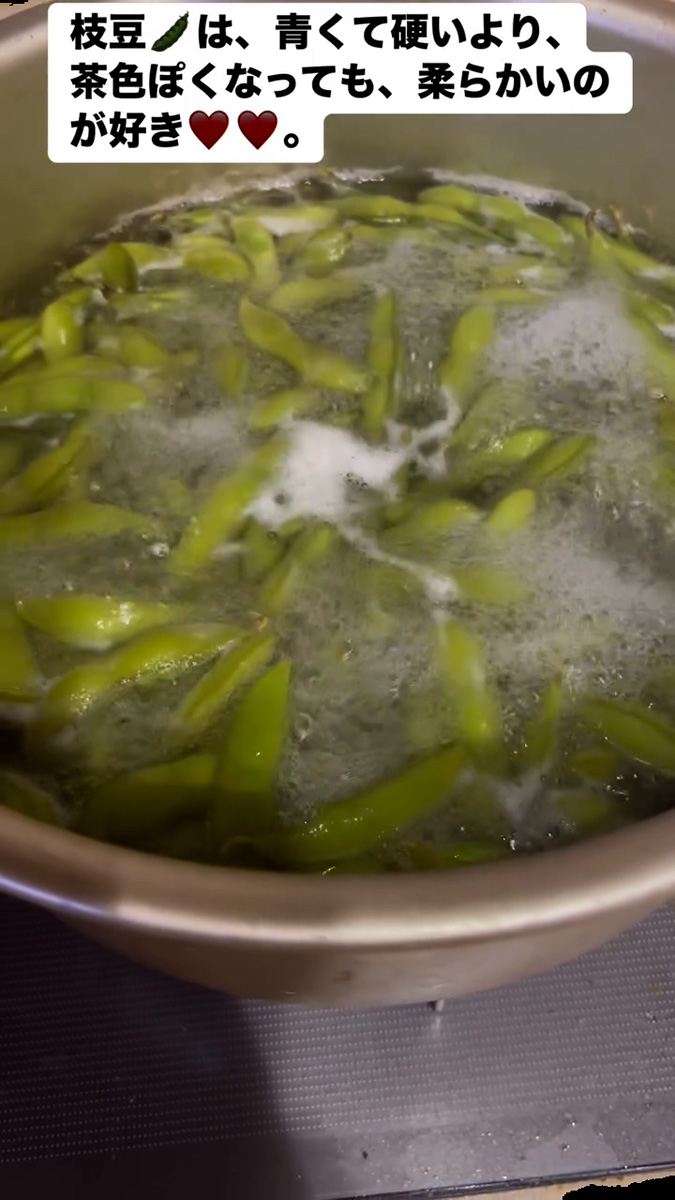 枝豆🫛は、 青くて硬いより、茶色ぽくなっても、柔らかいのが好き❤❤。