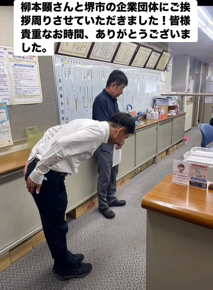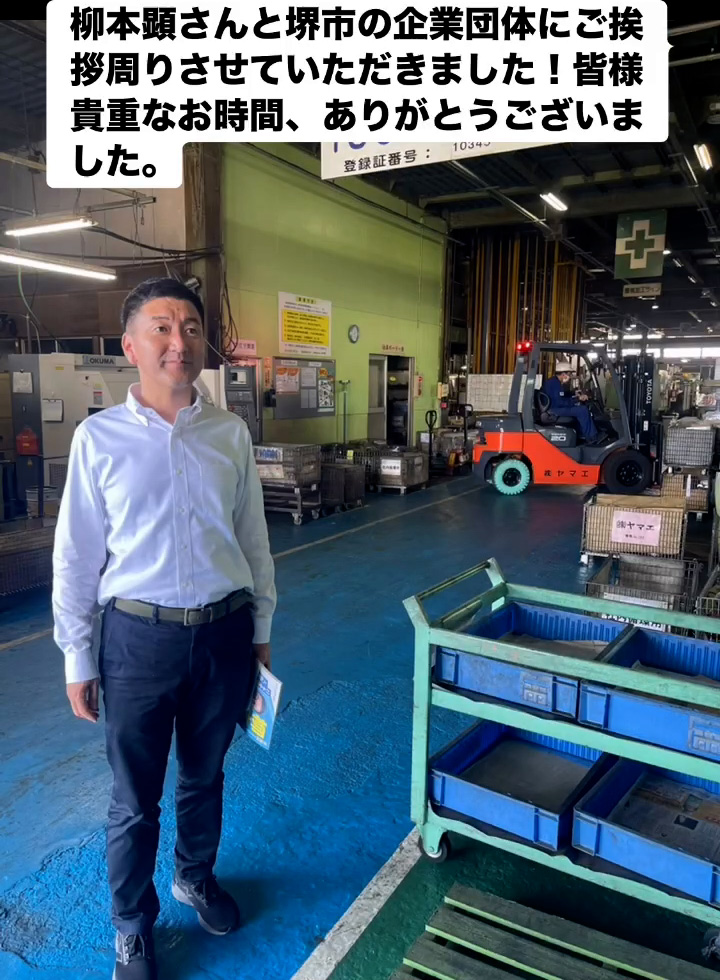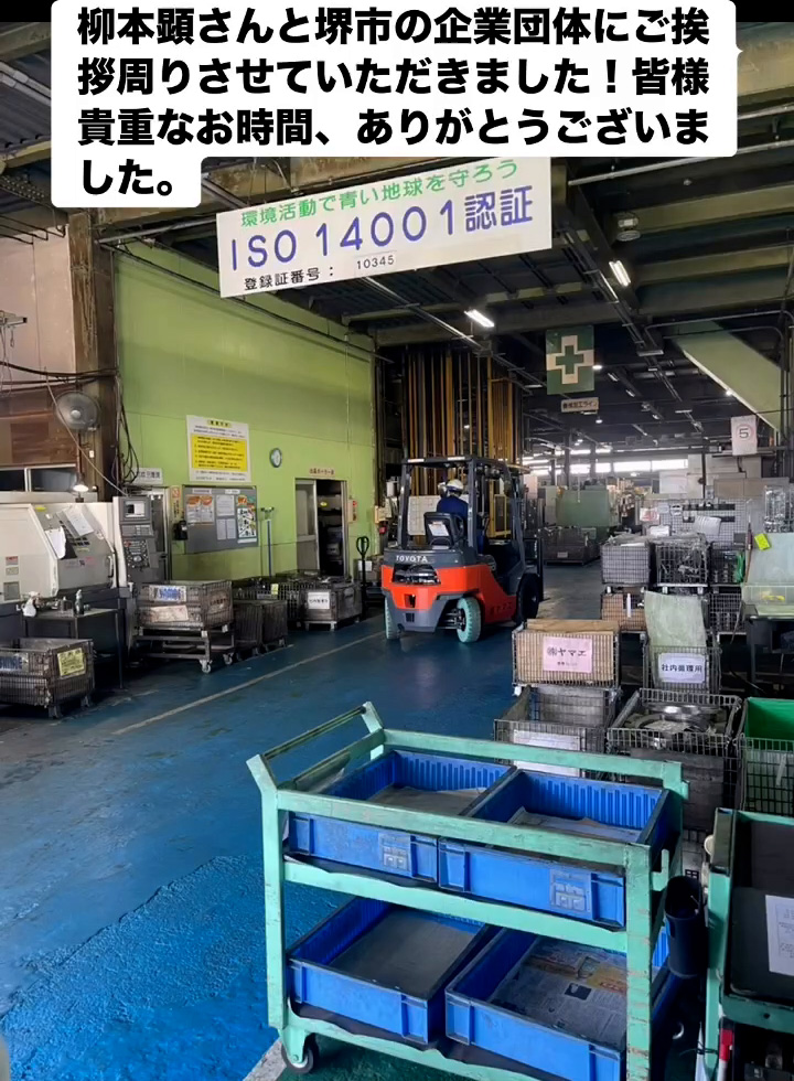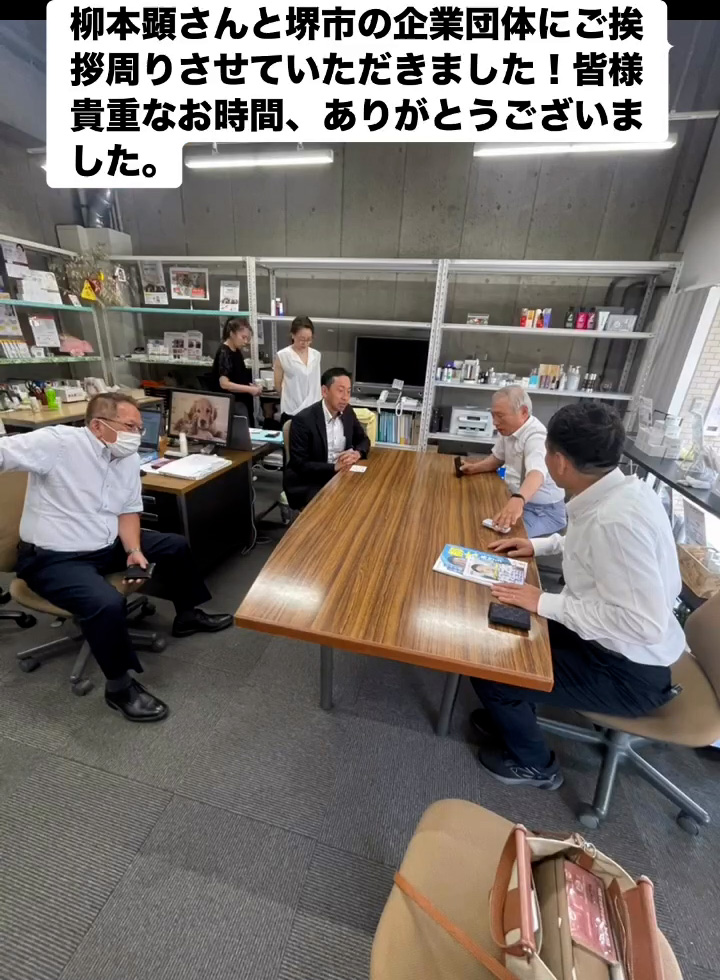 ご挨拶周り 7月2日 Posted on 2025年7月2日 09:07:012025年9月9日 柳本顕さんと堺市の企業団体にご挨拶周りさせていただきました!皆様貴重なお時間、ありがとうこざいました。 のりこの活動日記, 自民党大阪