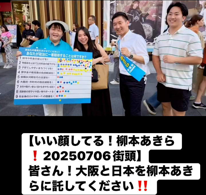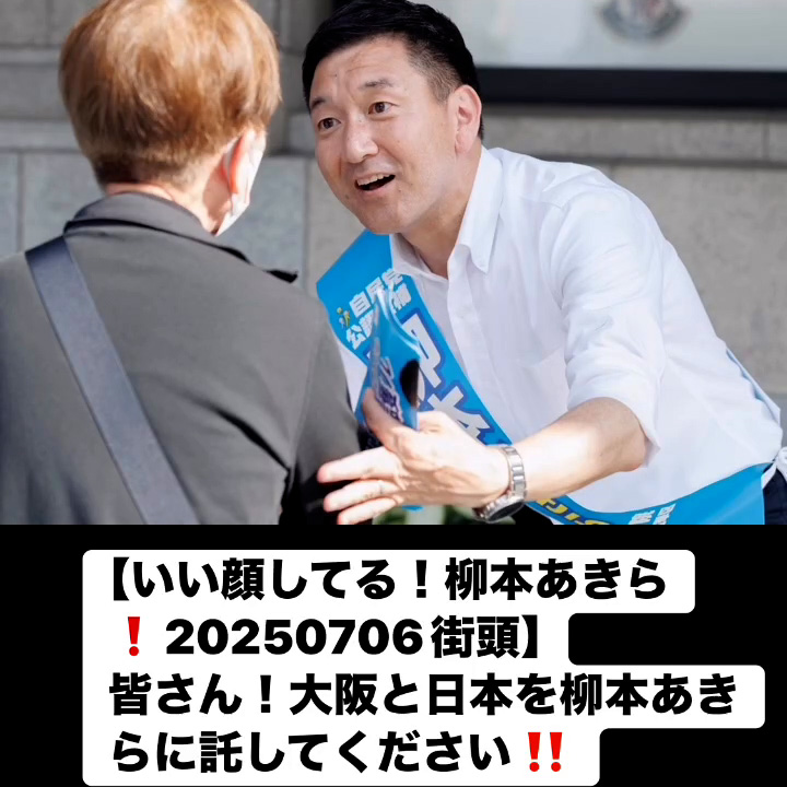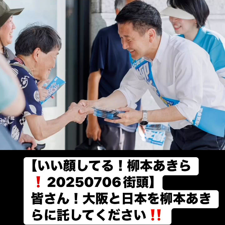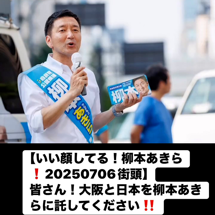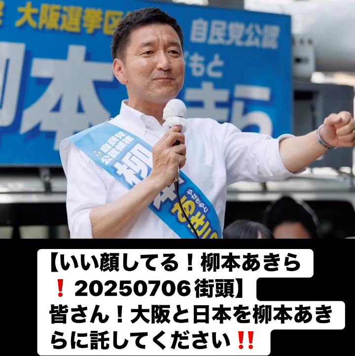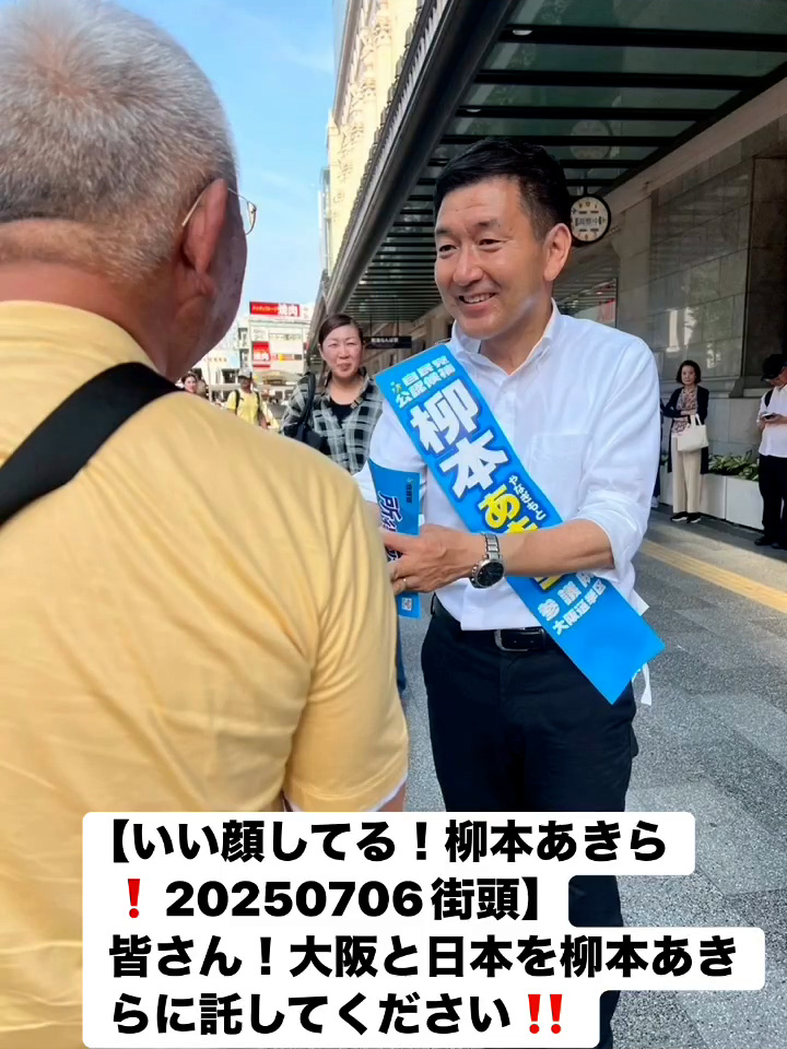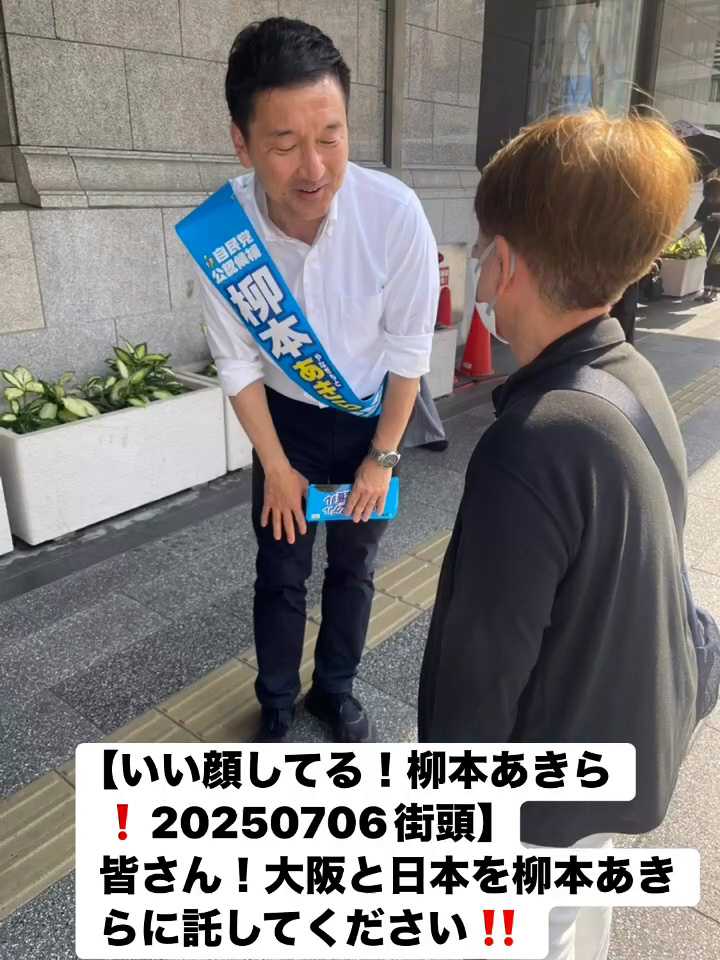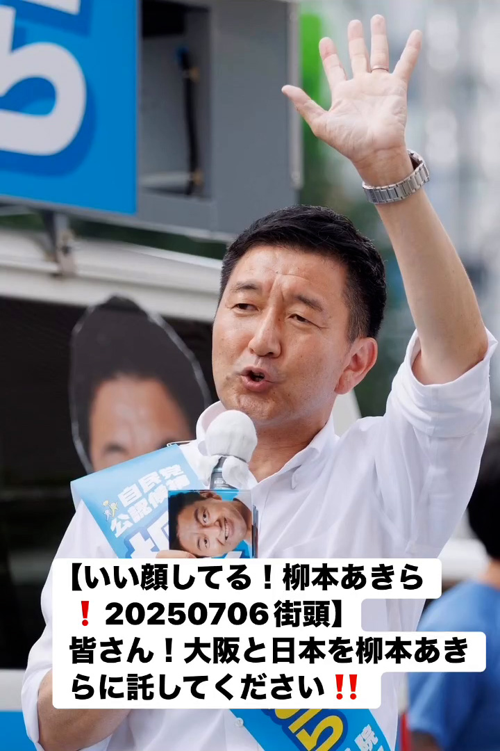 いい顔してる!柳本あきら!20250706街頭7月7日 Posted on 2025年7月7日 10:58:032025年9月9日 皆さん!大阪と日本を柳本あきらに託してください‼️ のりこの活動日記, 自民党大阪