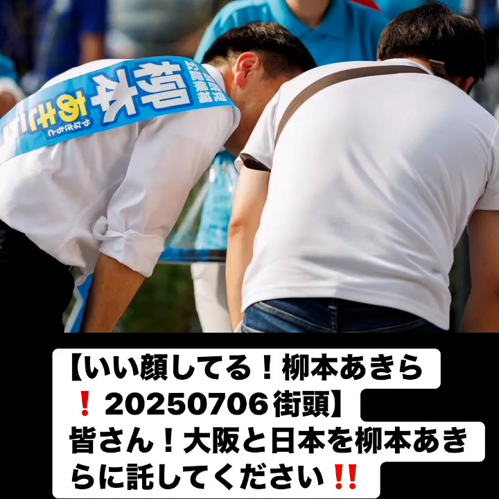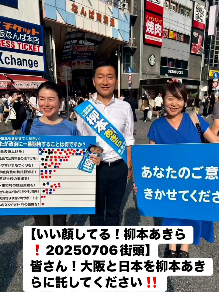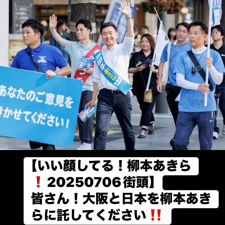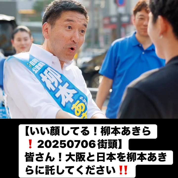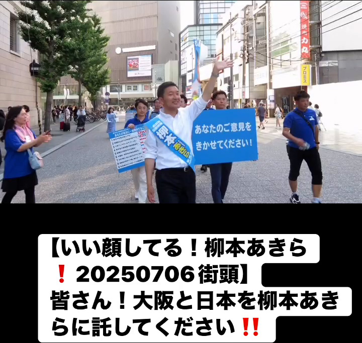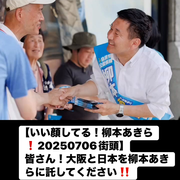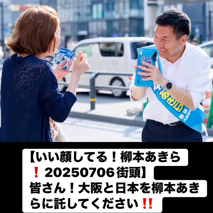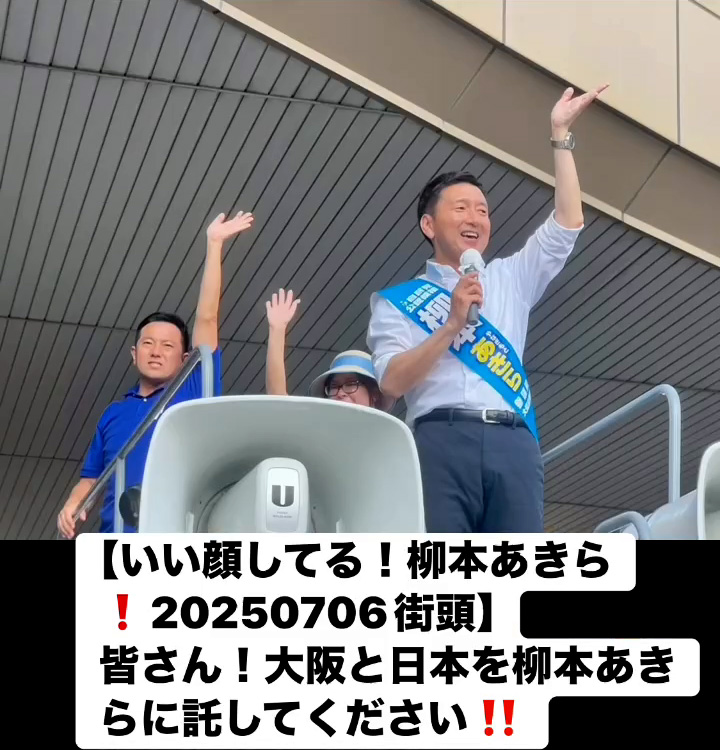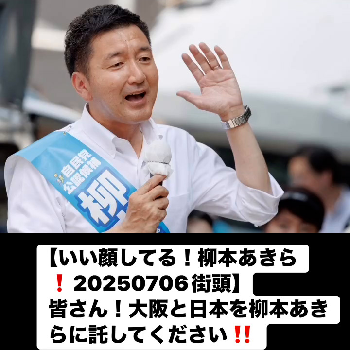 いい顔してる!柳本あきら!20250706街頭7月7日 Posted on 2025年7月7日 10:58:032025年9月9日 皆さん!大阪と日本を柳本あきらに託してください‼️ のりこの活動日記, 自民党大阪