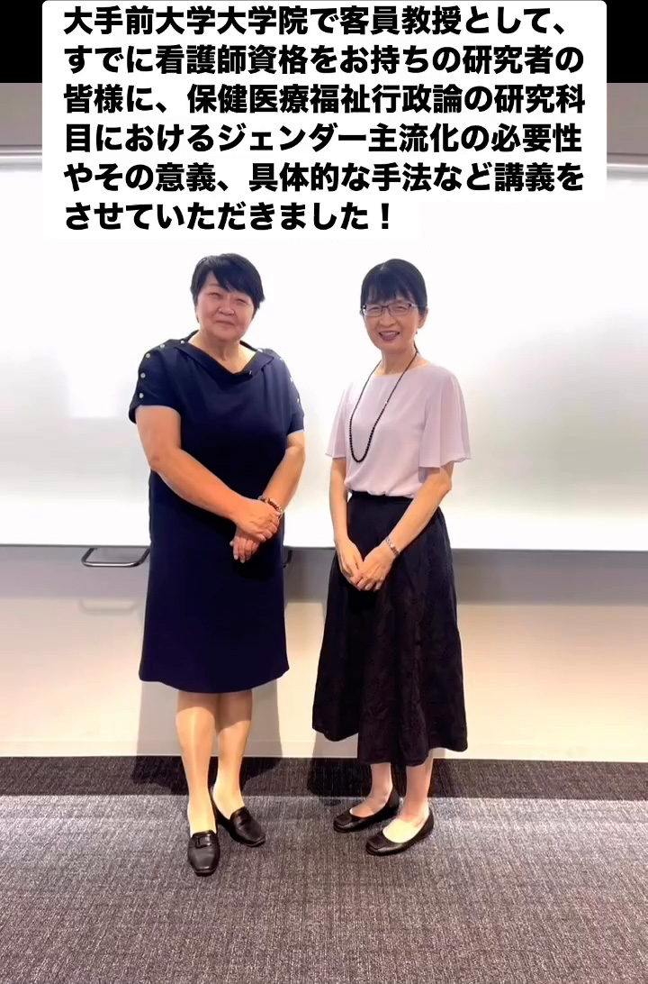 大手前大学大学院で講義 7月13日 Posted on 2025年7月13日 00:51:012025年9月9日 大手前大学大学院で客員教授として、すでに看護師資格をお持ちの研究者の皆様に、保健医療福祉行政論の研究科目におけるジェンダー主流化の必要性やその意義、具体的な手法など講義をさせていただきました! のりこの活動日記