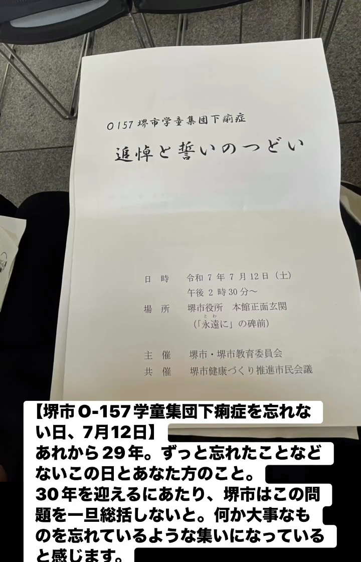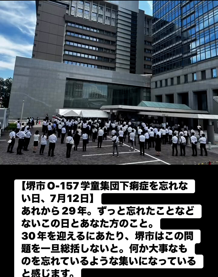 堺市O-157学童集団下痢症を忘れない日、7月12日 7月13日