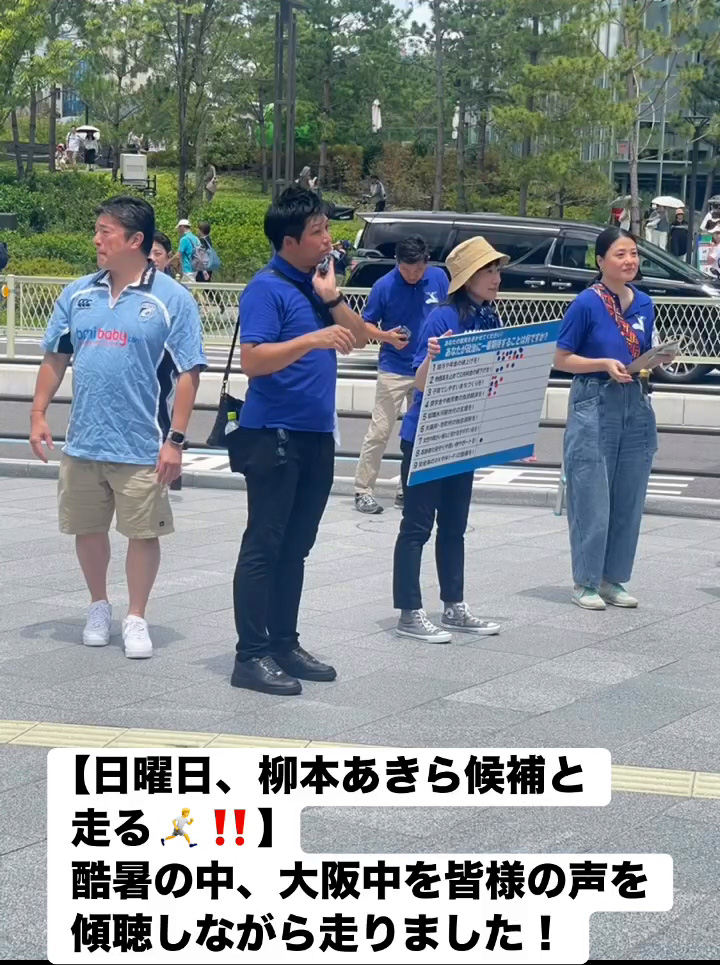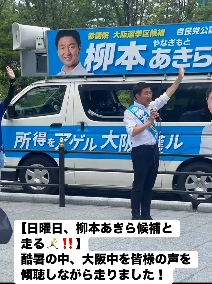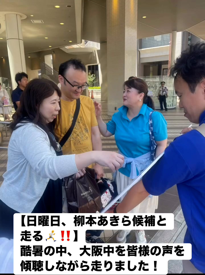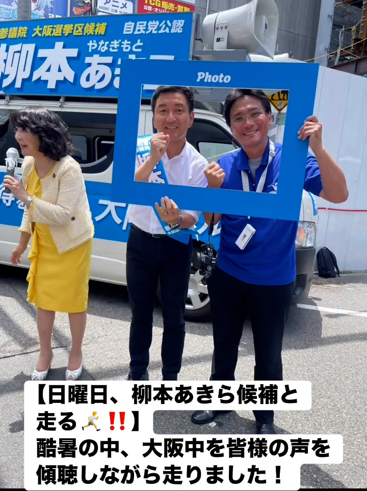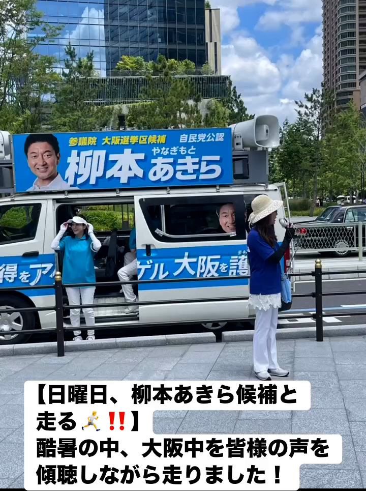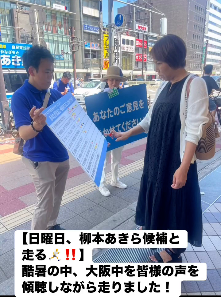 日曜日、柳本あきら候補と走る!! 7月14日 Posted on 2025年7月14日 00:00:012025年9月9日 酷暑の中、大阪中を皆様の声を傾聴しながら走りました! のりこの活動日記, 自民党大阪