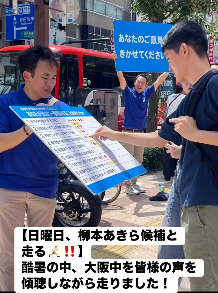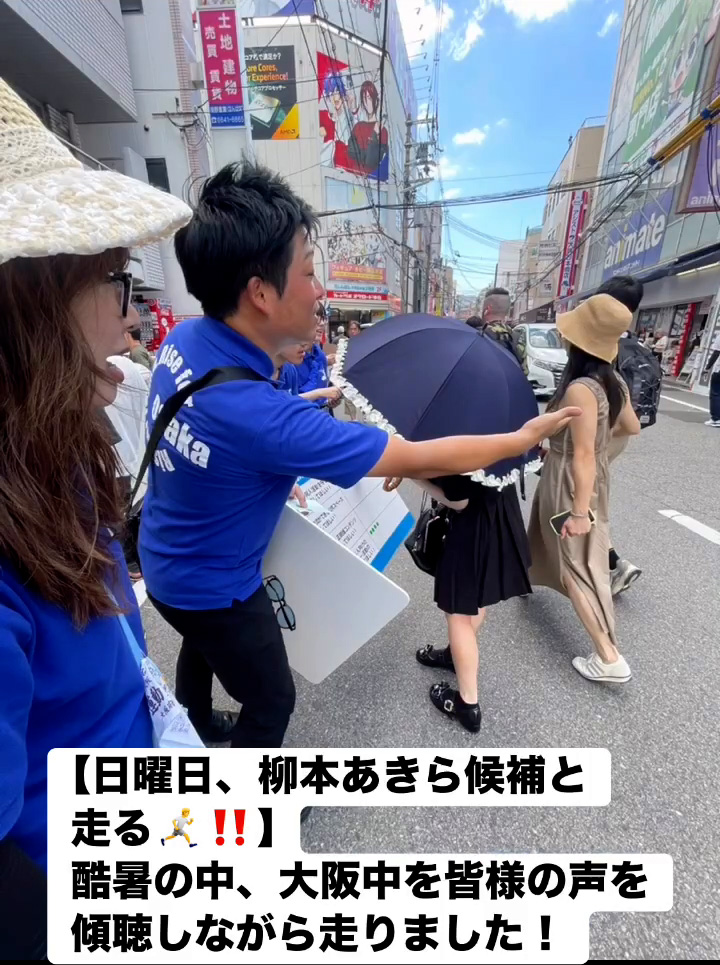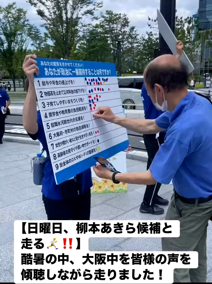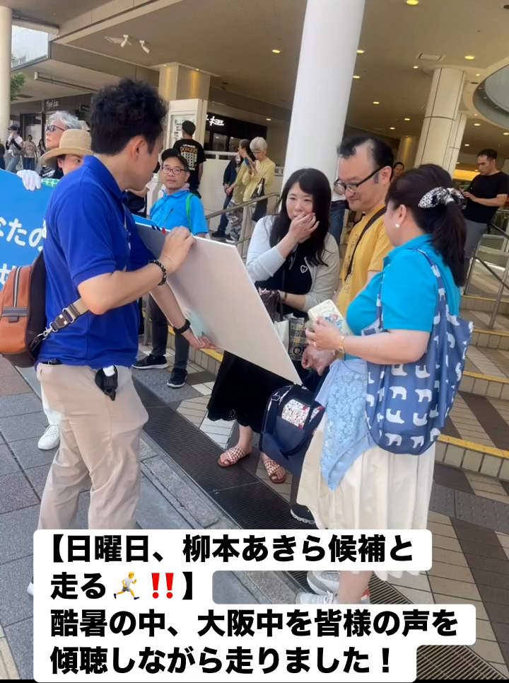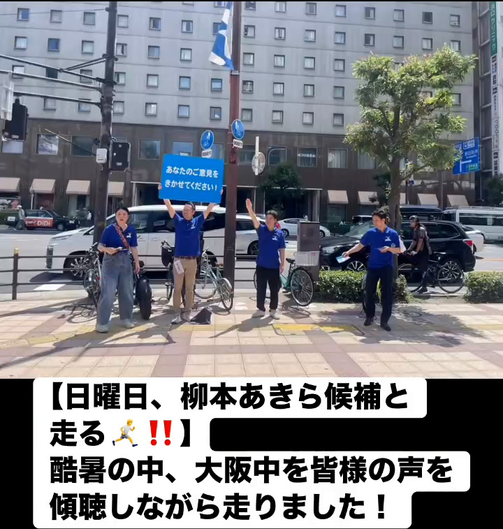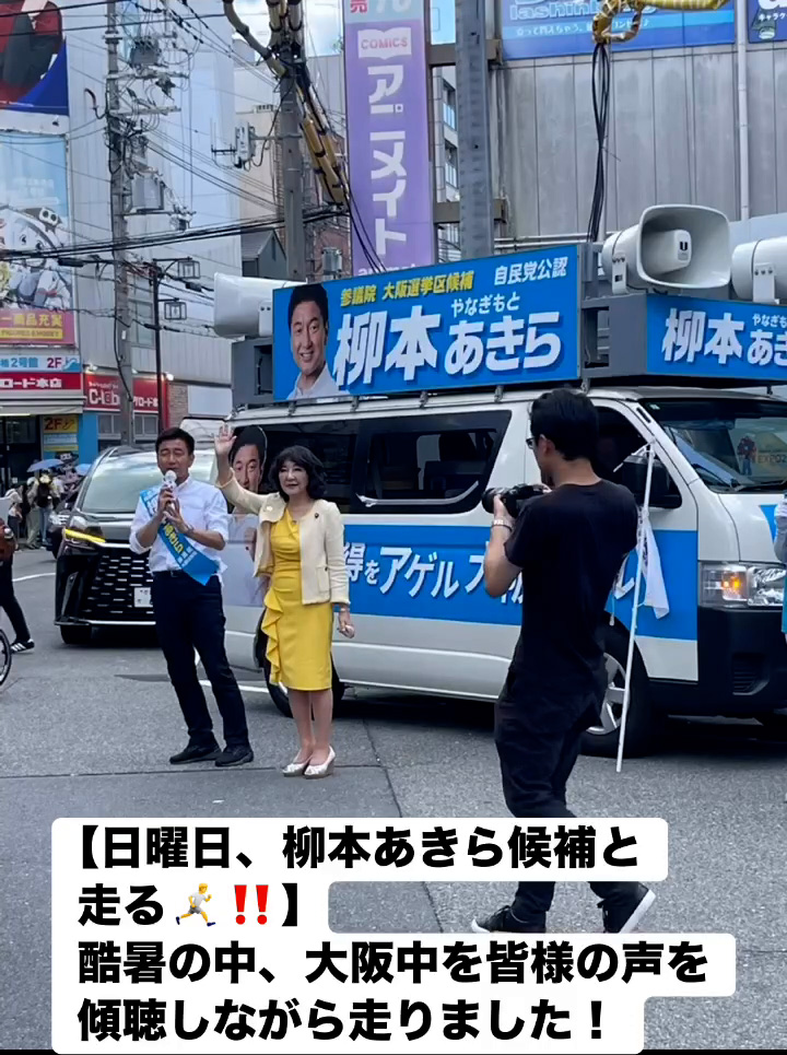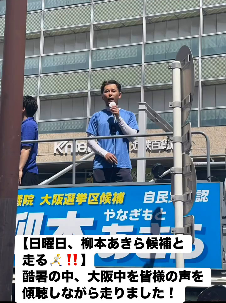 日曜日、柳本あきら候補と走る!! 7月14日 Posted on 2025年7月14日 00:00:012025年9月9日 酷暑の中、大阪中を皆様の声を傾聴しながら走りました! のりこの活動日記, 自民党大阪