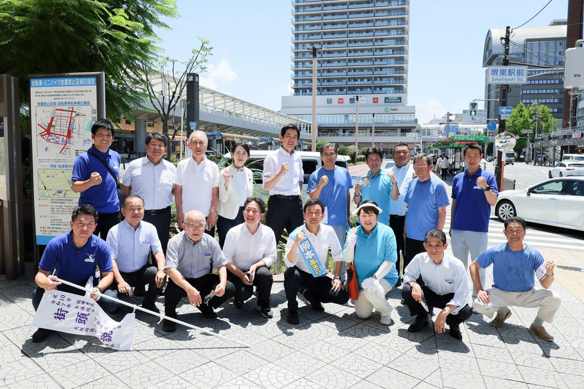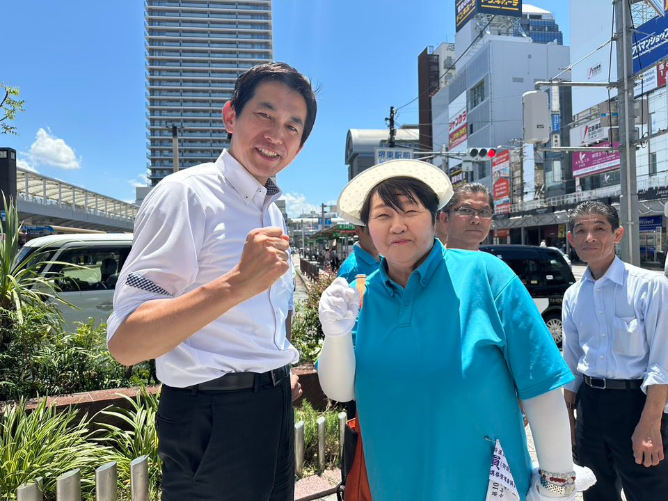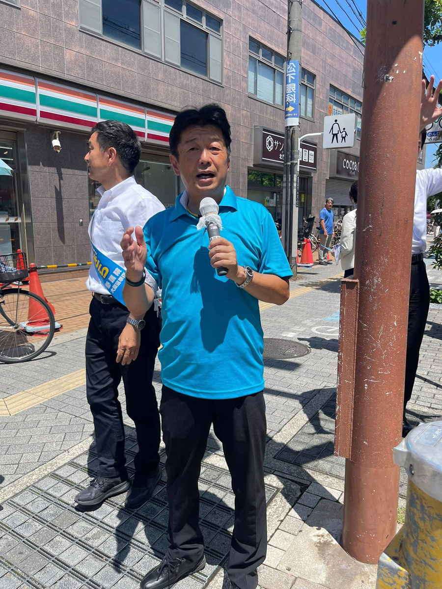 朝一番は、堺東駅で街宣。次はスーパーサンプラザさんの朝礼に伺ってご挨拶させていただきました。山口社長様もお越しくださいました。酷暑の中、駅やスーパー、集合住宅の中で、こまめに街宣。