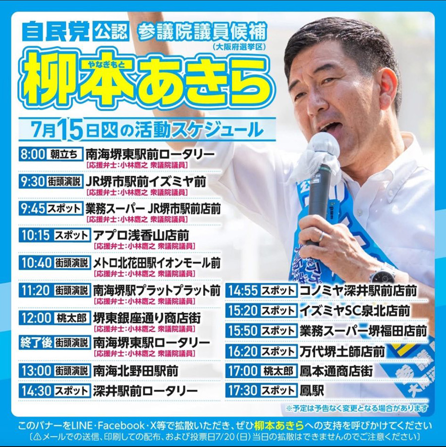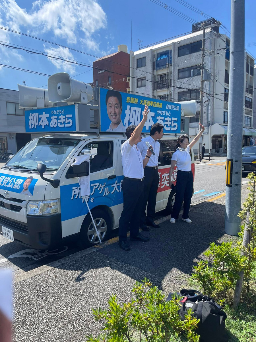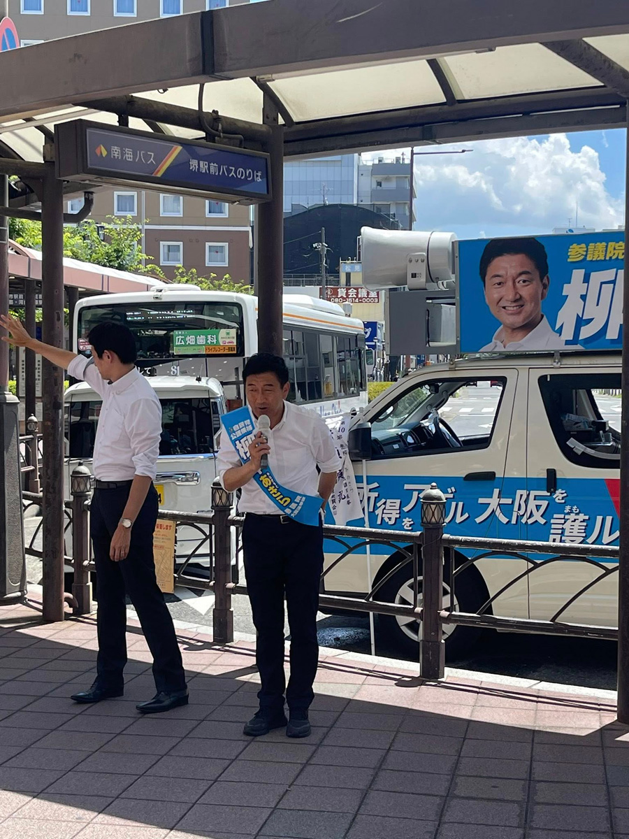 昨日15日は午前8時から午後5時まで、柳本あきら候補と堺を街宣しました!