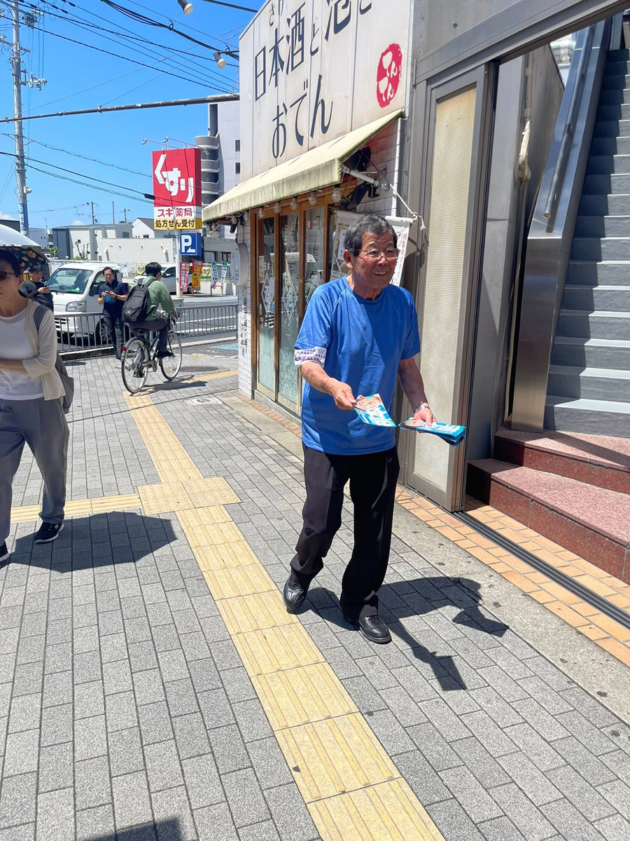 朝のサンプラザさんの朝礼から貝塚前市議の田中がく先生もずっとお手伝いくださいました!感謝です🙏。
