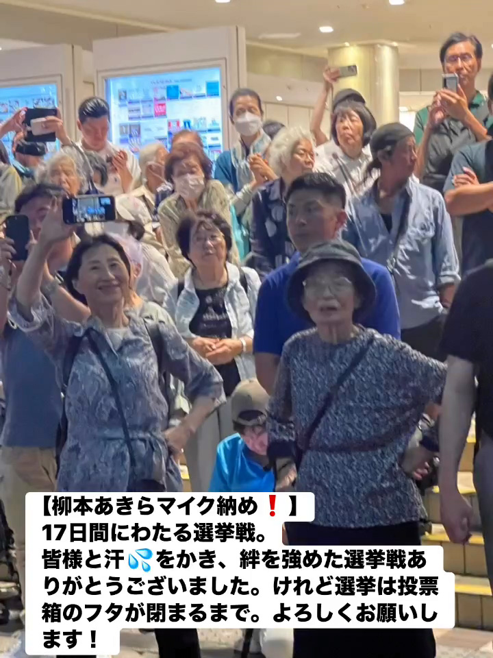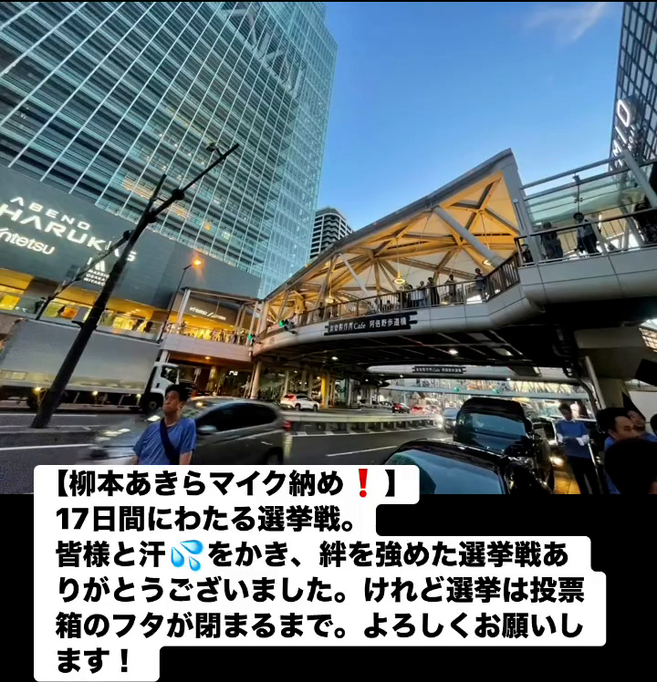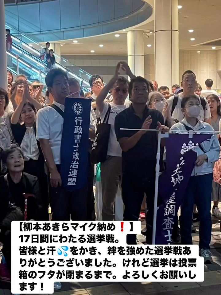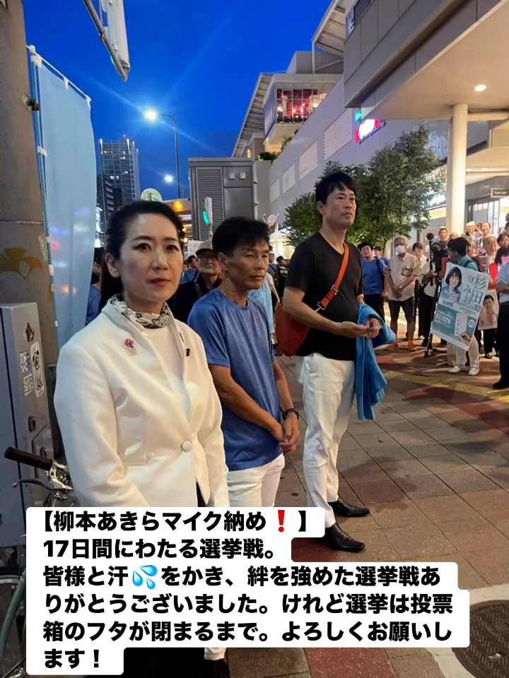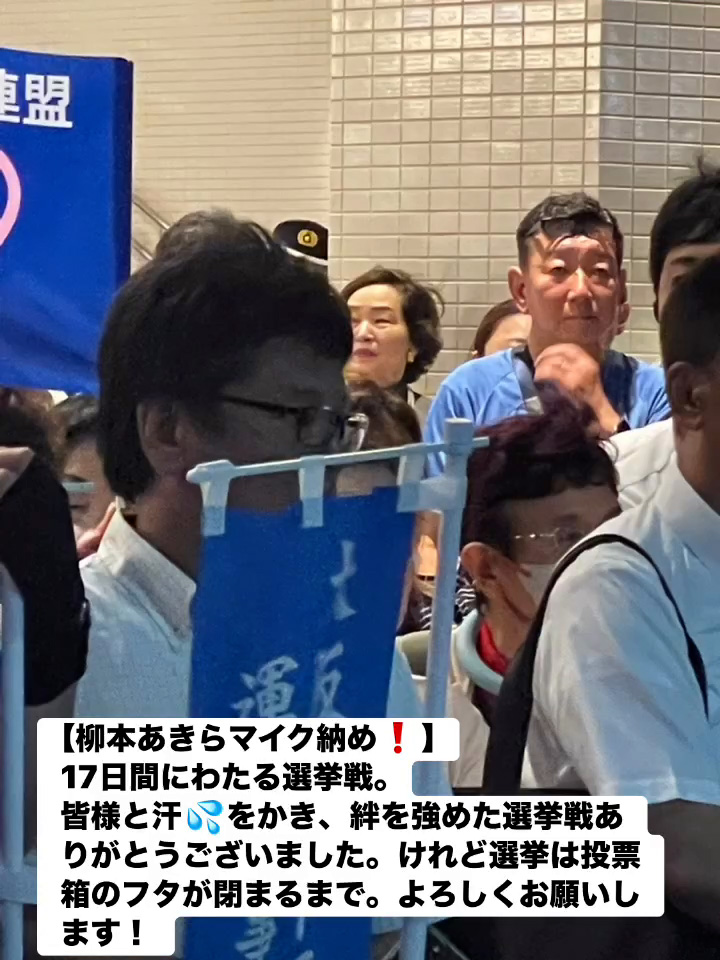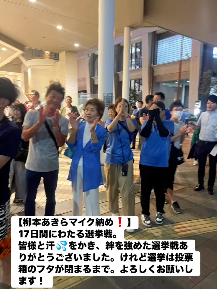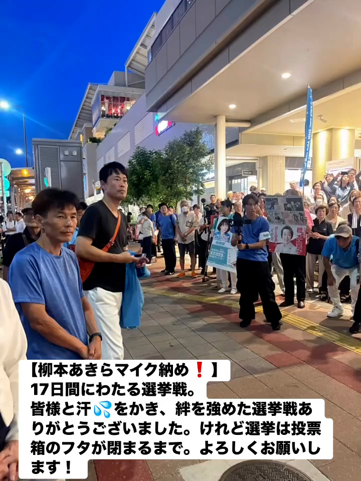 柳本あきらマイク納め! 7月19日 Posted on 2025年7月19日 22:13:042025年9月9日 17日間にわたる選挙戦。皆様と汗💦をかき、絆を強めた選挙戦ありがとうこざいました。 けれど選挙は投票箱のフタが閉まるまで。よろしくお願いします! のりこの活動日記, 自民党大阪