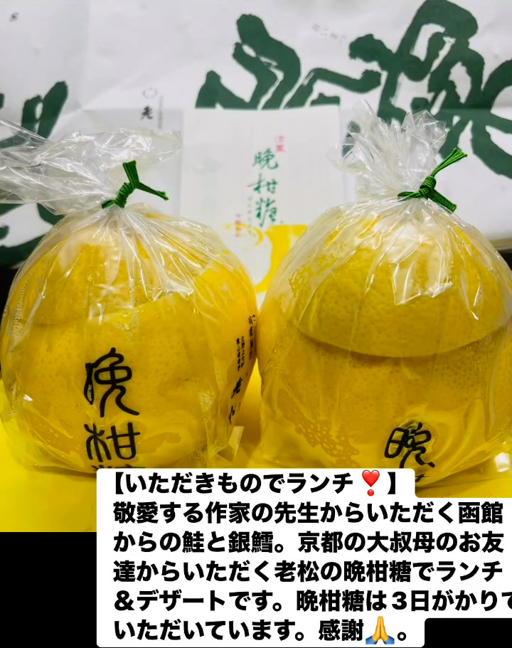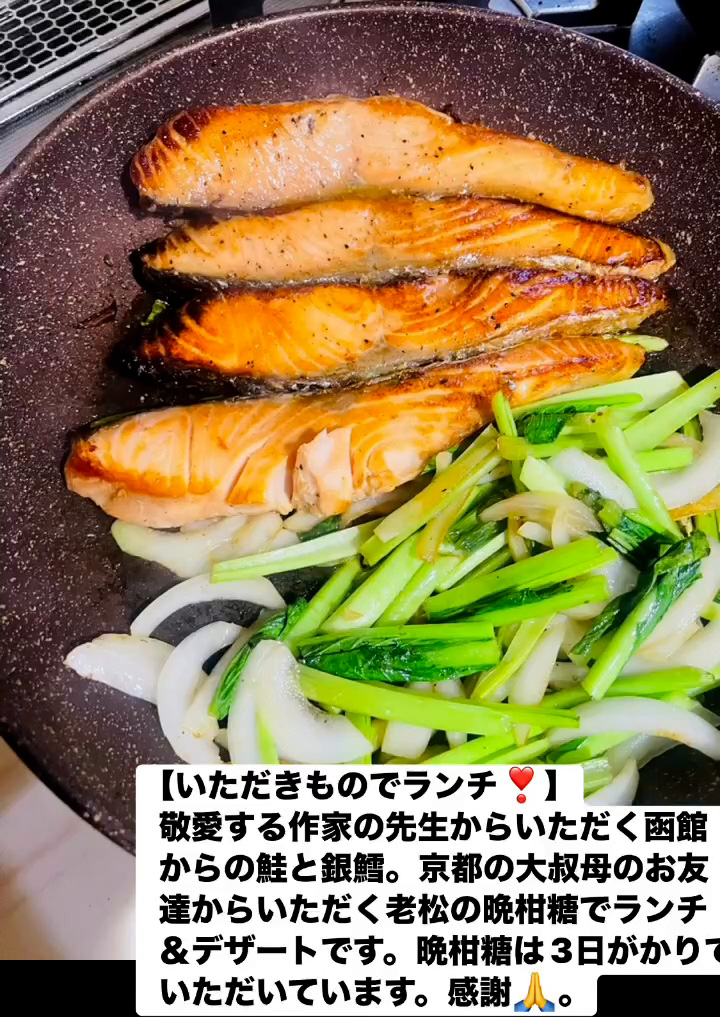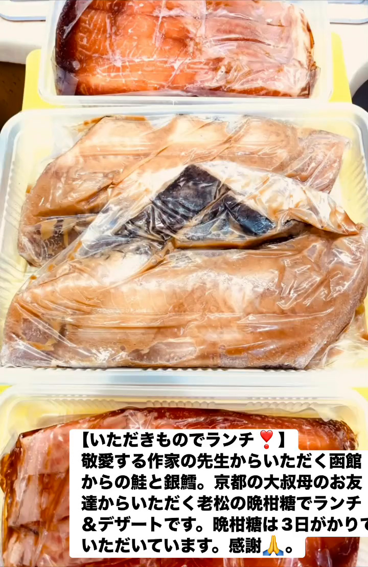 いただきものでランチ! 8月15日 Posted on 2025年8月15日 14:12:032025年9月9日 敬愛する作家の先生からいただく函館からの鮭と銀鱈。京都の大叔母のお友達からいただく老松の晩柑糖でランチ&テザートです。晩柑糖は3日がかりでいただいています。感謝🙏。 のりこの活動日記, のりこの部屋