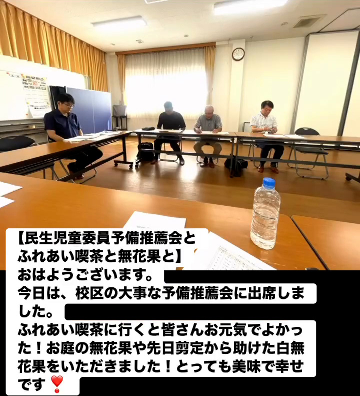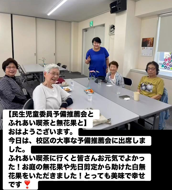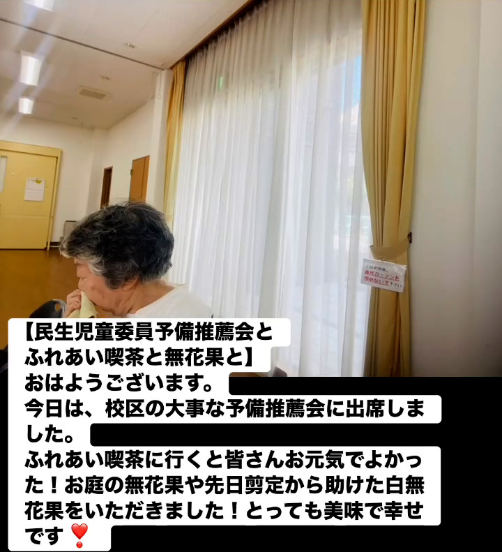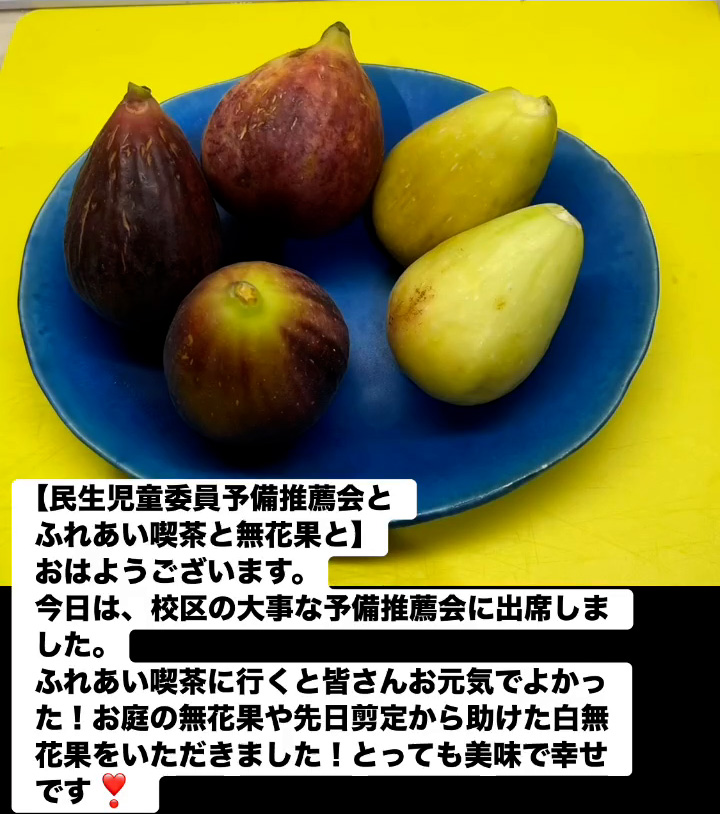 民生児童委員予備推薦会とふれあい喫茶と無花果と 8月16日 Posted on 2025年8月16日 11:15:012025年9月9日 おはようこざいます。今日は、校区の大事な予備推薦会に出席しました。ふれあい喫茶に行くと皆さんお元気でよかった!お庭の無花果や先日剪定から助けた白無花果をいただきました!とっても美味で幸せです❣ のりこの活動日記