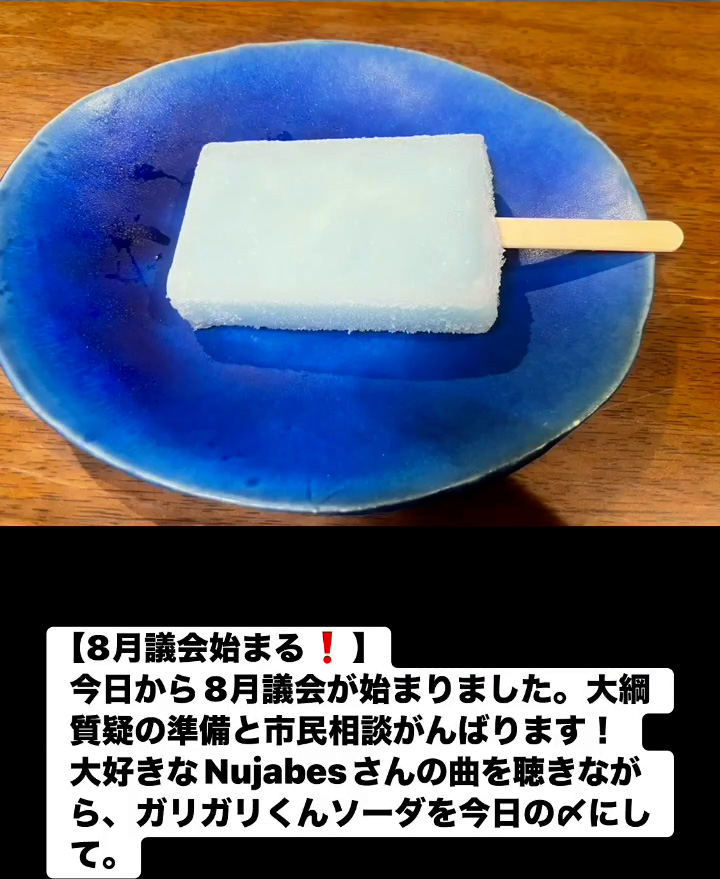今日から8月議会が始まりました。 大綱質疑の準備と市民相談がんばります!大好きな Nujabes さんの曲を聴きながら、 ガリガリくんソータを今日の〆にして。