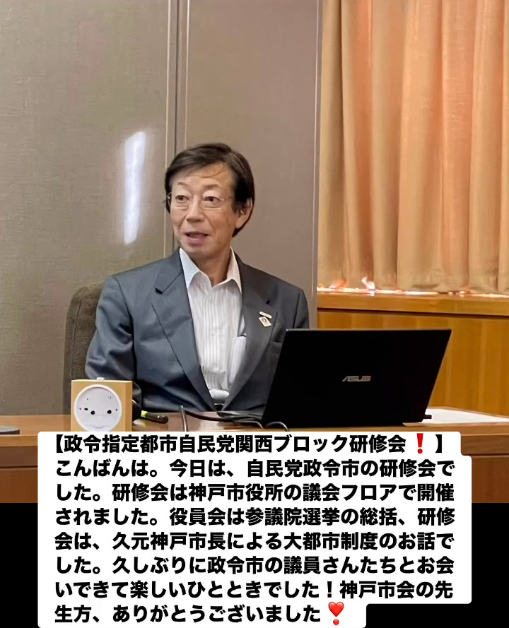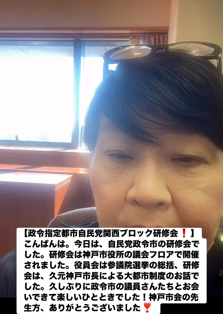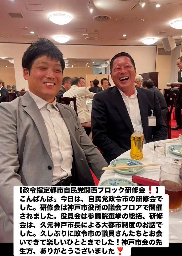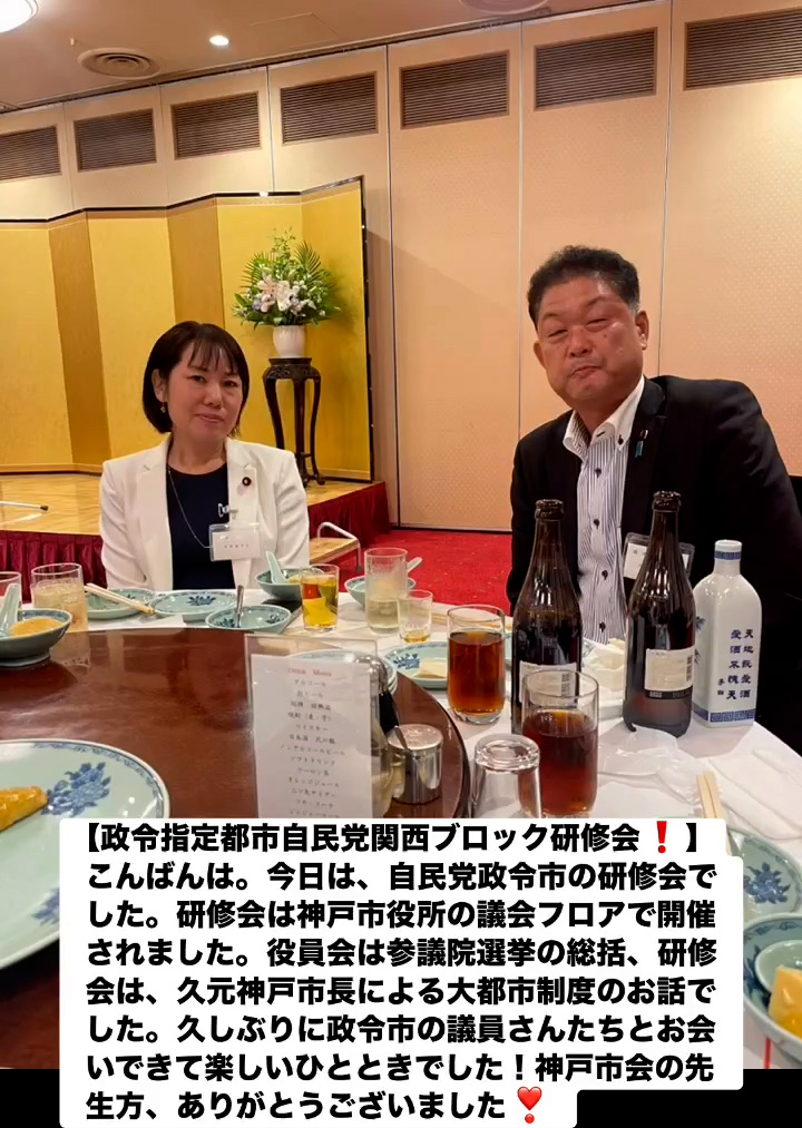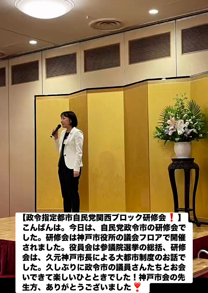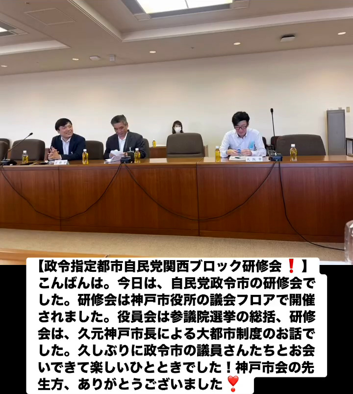 政令指定都市自民党関西ブロック研修会! 8月21日 Posted on 2025年8月21日 20:36:012025年9月9日 こんばんは。今日は、自民党政令市の研修会でした。 研修会は神戸市役所の議会フロアで開催されました。役員会は参議院選挙の総括、研修会は、久元神戸市長による大都市制度のお話でした。 久しぶりに政令市の議員さんたちとお会いできて楽しいひとときでした!神戸市会の先生方、ありがとうごさいました❣ のりこの活動日記, 自民党大阪
