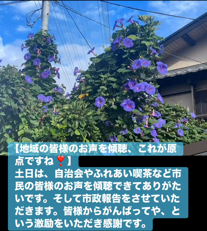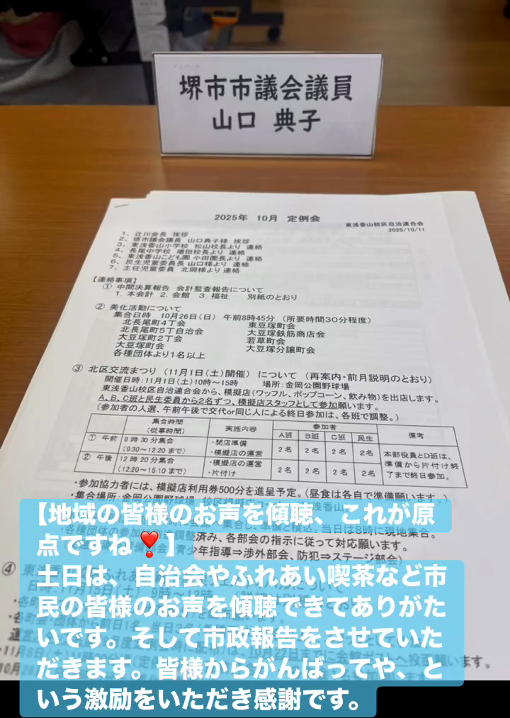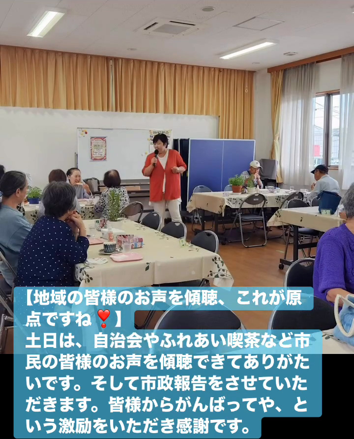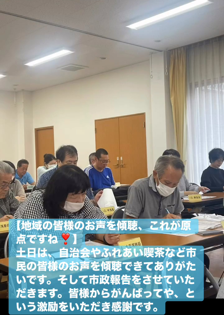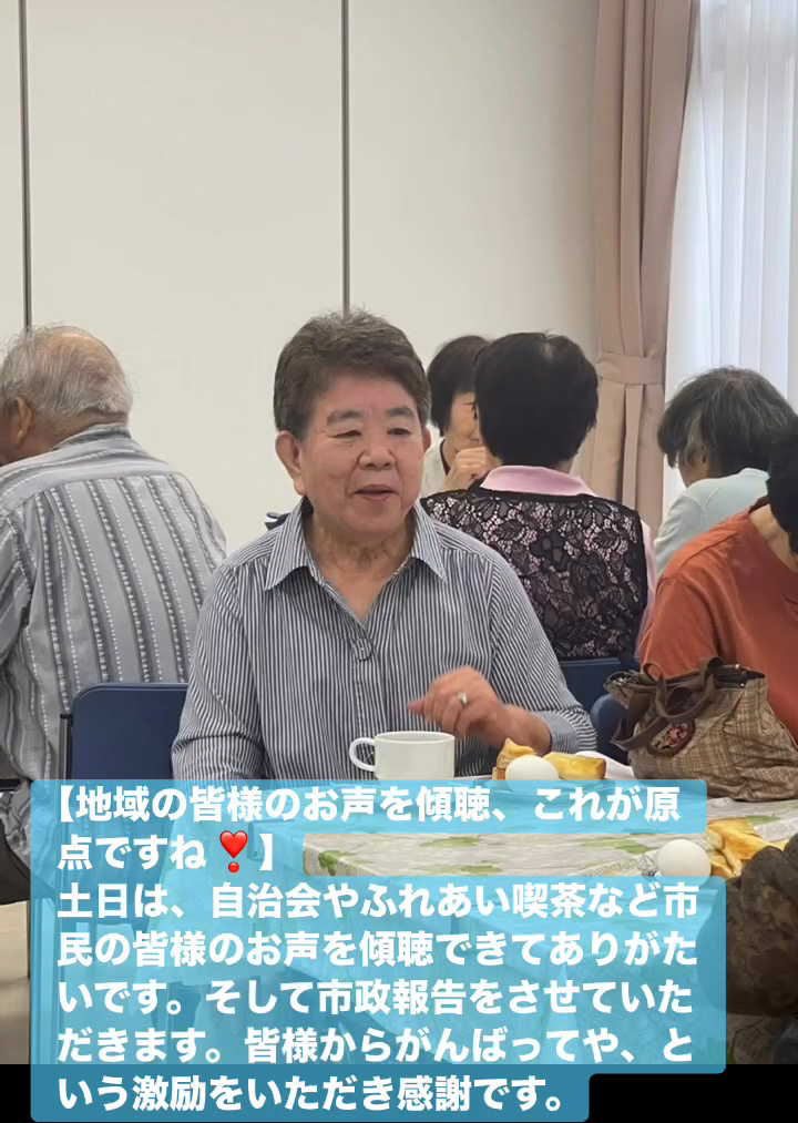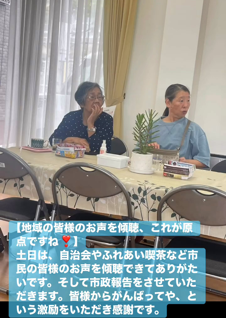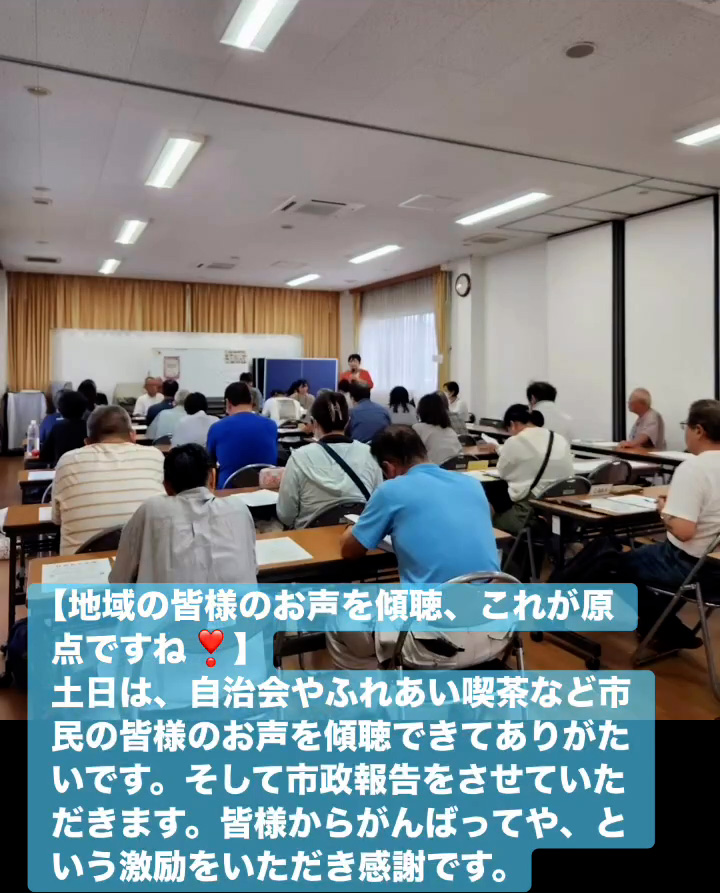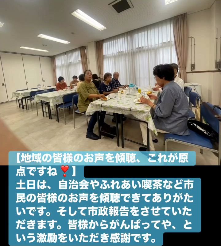地域の皆様のお声を傾聴、これが原点ですね! 10月12日 Posted on 2025年10月12日 13:05:012025年10月14日 土日は、自治会やふれあい喫茶など市民の皆様のお声を傾聴できてありがたいです。そして市政報告をさせていただきます。皆様からがんばってや、という激励をいただき感謝です。 のりこの活動日記