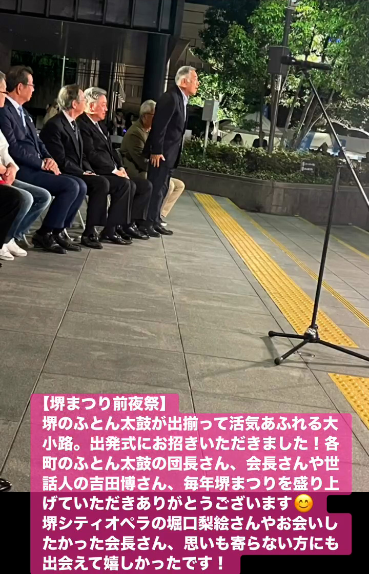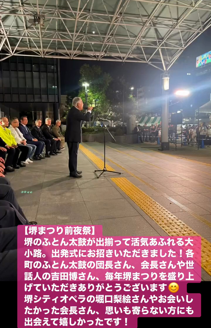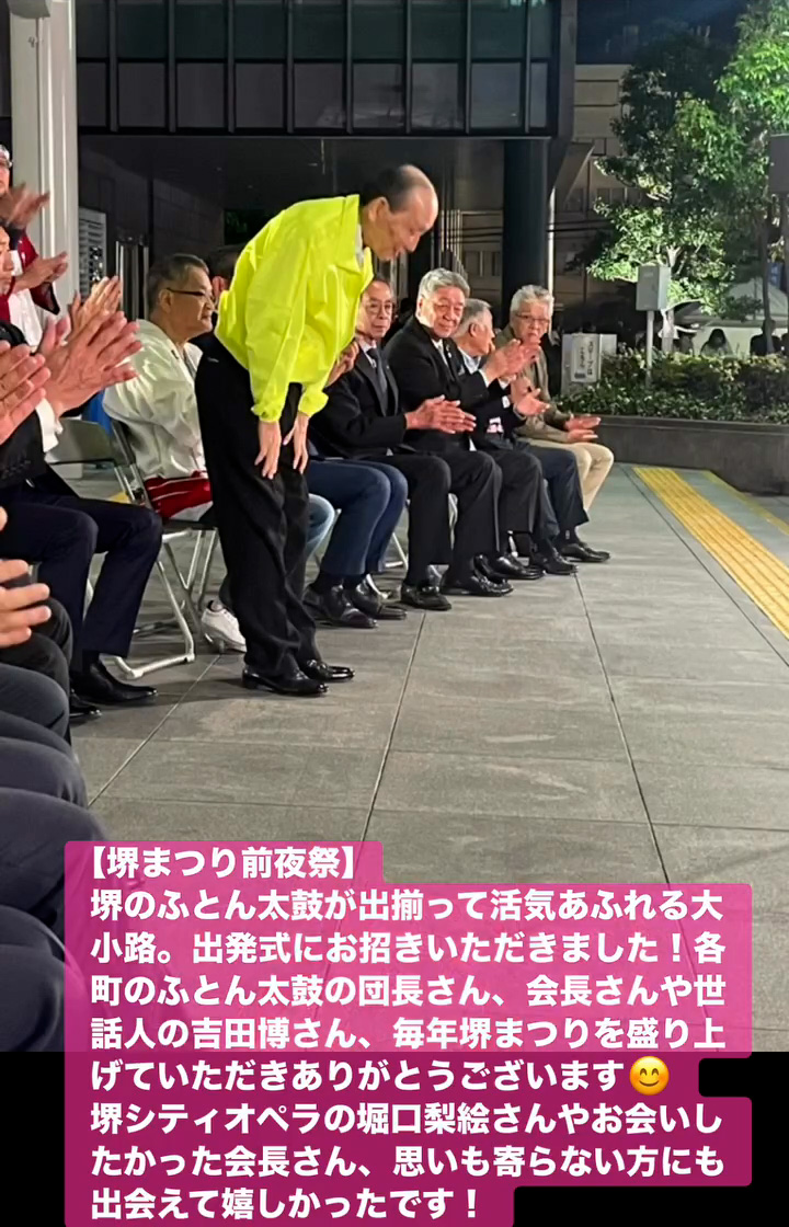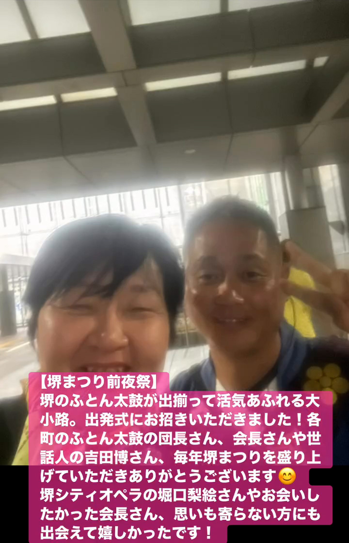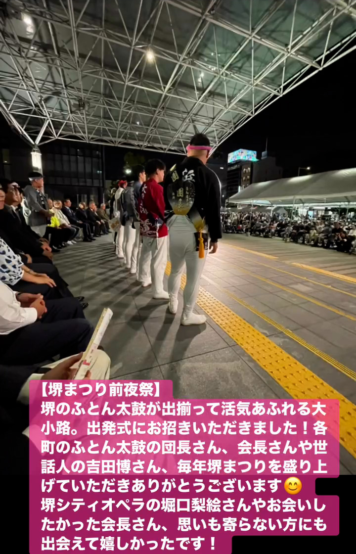 堺のふとん太鼓が出揃って活気あふれる大小路。出発式にお招きいただきました!各町のふとん太鼓の団長さん、会長さんや世話人の吉田博さん、毎年堺まつりを盛り上けていただきありがとうこざいます。