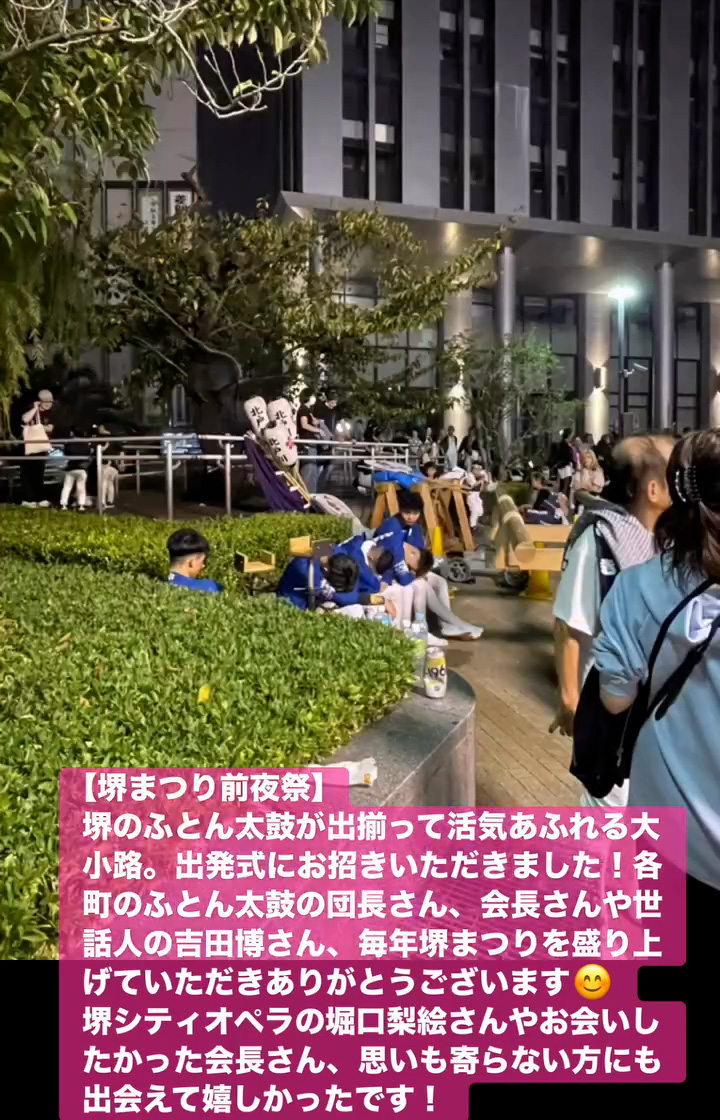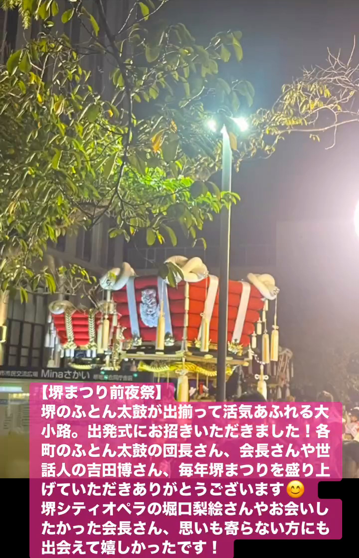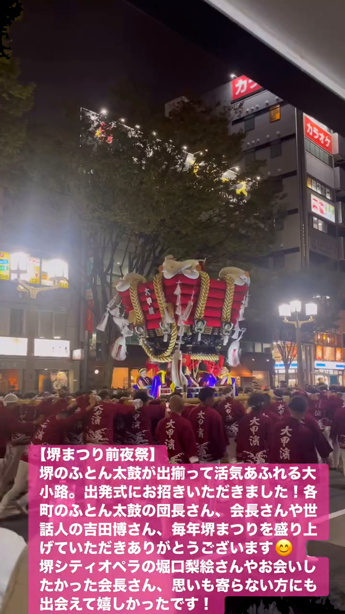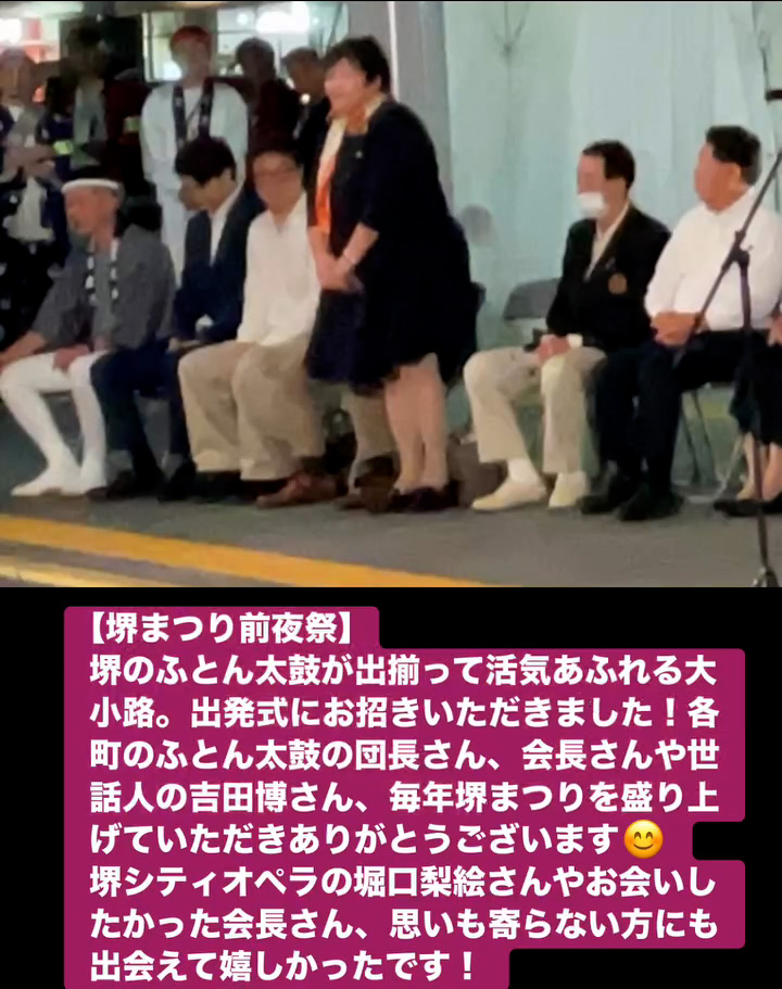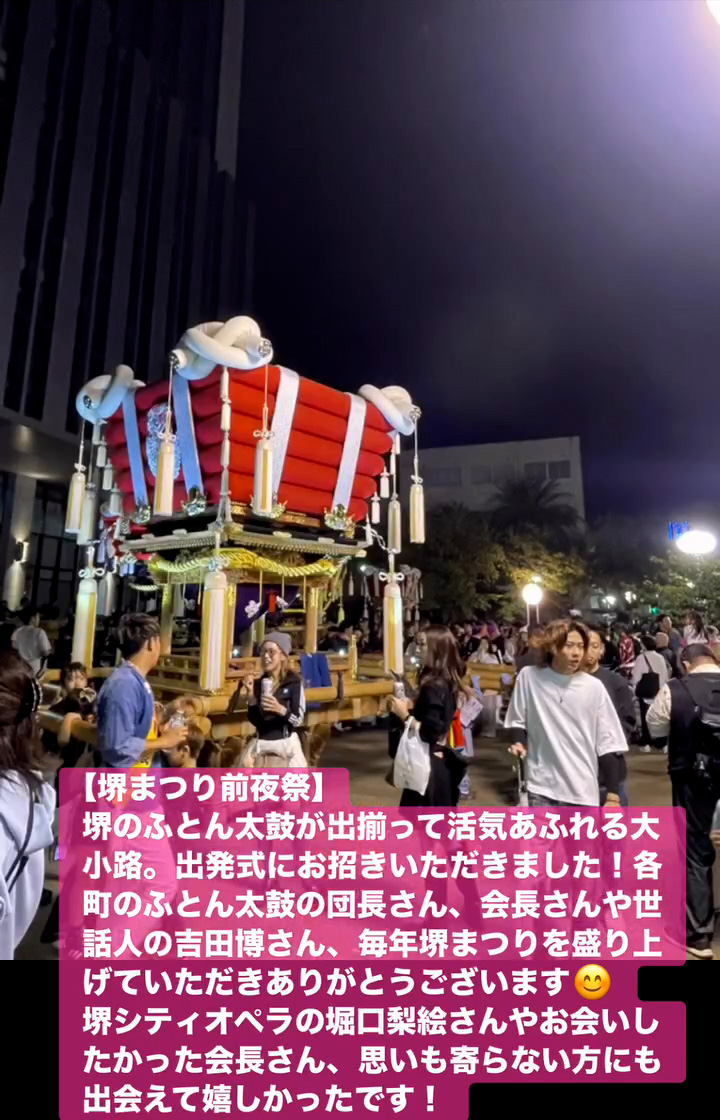 堺のふとん太鼓が出揃って活気あふれる大小路。出発式にお招きいただきました!各町のふとん太鼓の団長さん、会長さんや世話人の吉田博さん、毎年堺まつりを盛り上けていただきありがとうこざいます。