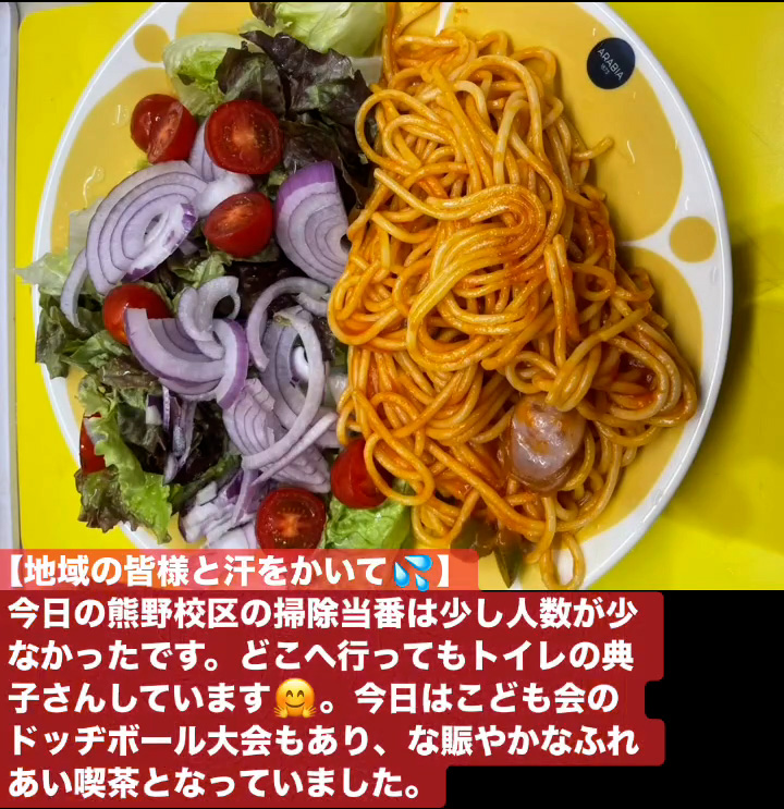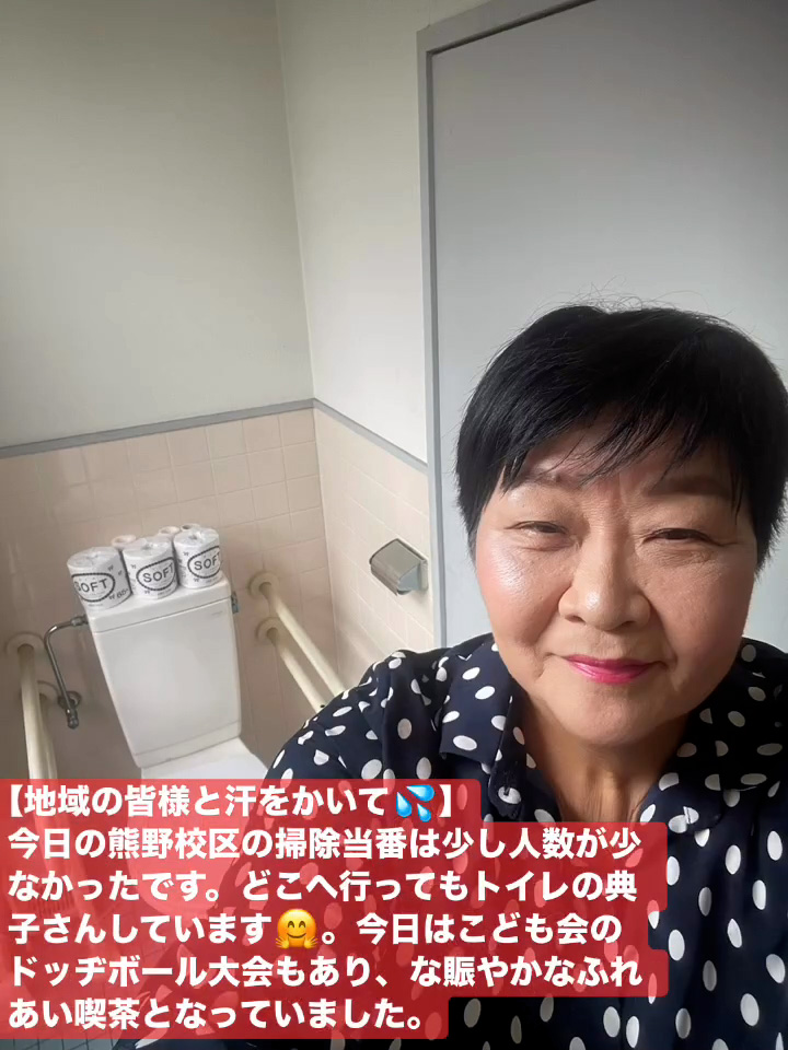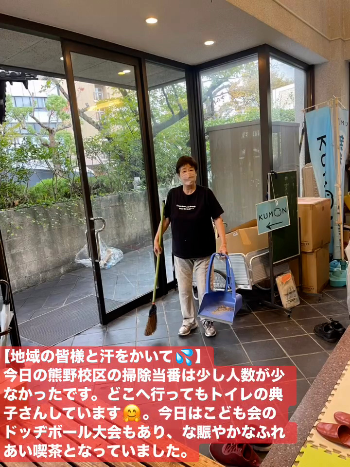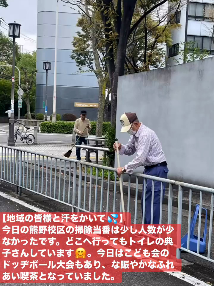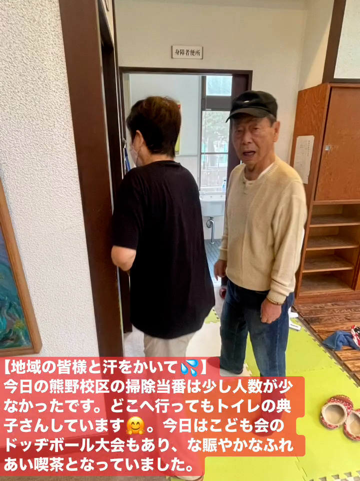 地域の皆様と汗をかいて 10月26日 Posted on 2025年10月26日 21:08:032025年10月27日 今日の熊野校区の掃除当番は少し人数が少なかったです。どこへ行ってもトイレの典子さんしています🤗。今日はこども会のドッチボール大会もあり、賑やかなふれあい喫茶となっていました。 のりこの活動日記