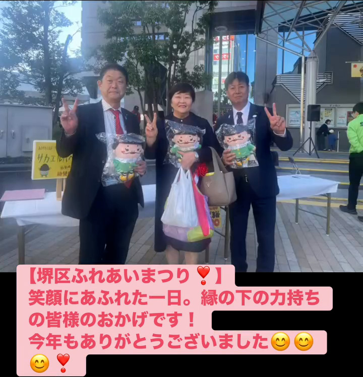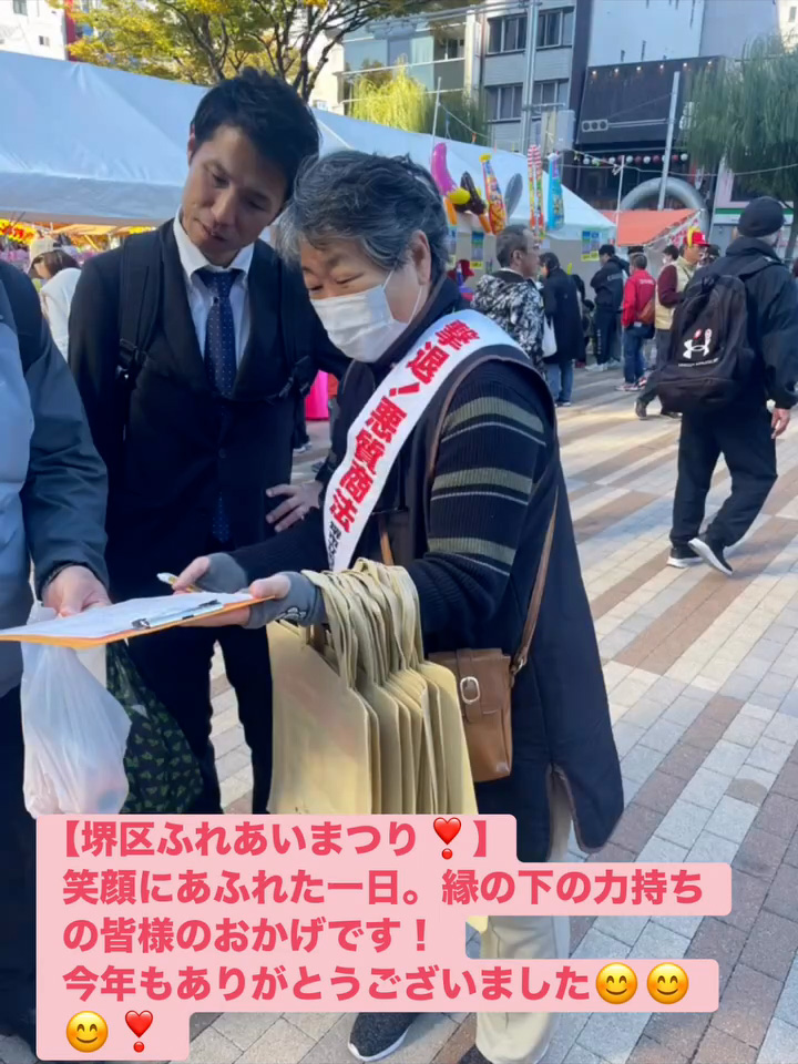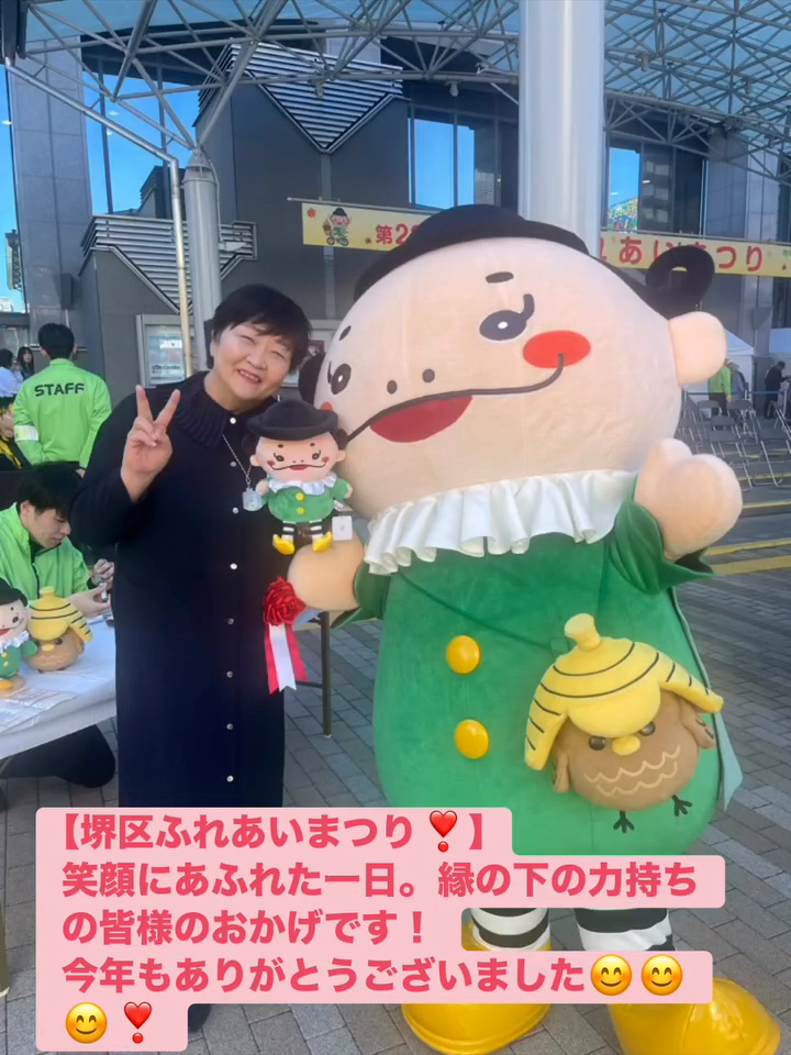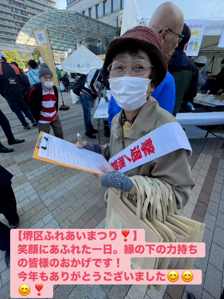 堺区ふれあいまつり! 11月16日 Posted on 2025年11月16日 15:21:012025年11月17日 笑顔にあふれた一日。縁の下の力持ちの皆様のおかげです!今年もありがとうございました😊😊😊❣ のりこの活動日記