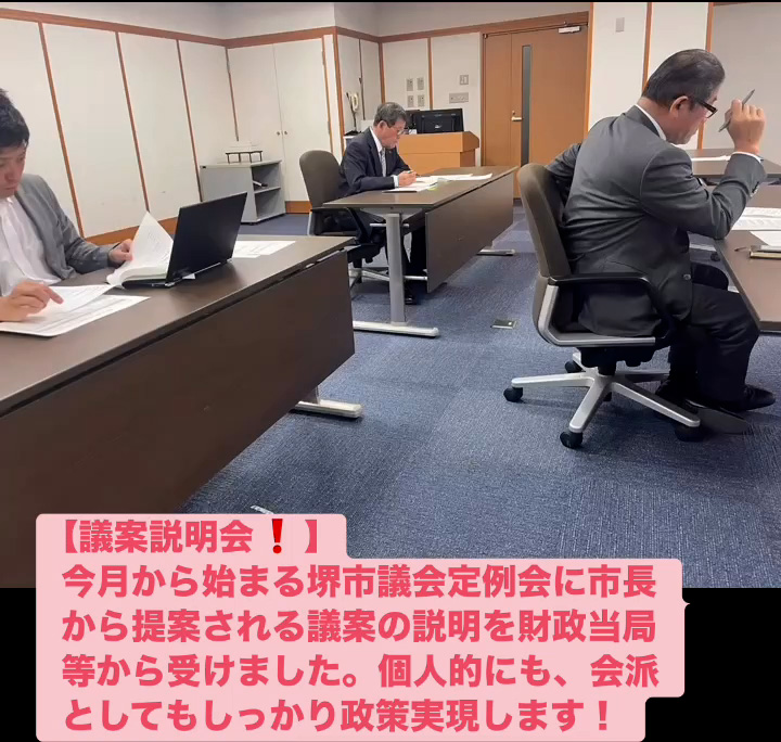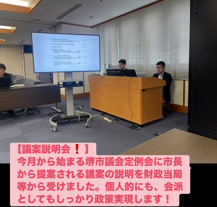 議案説明会! 11月17日 Posted on 2025年11月17日 20:50:032025年11月18日 今月から始まる堺市議会定例会に市長から提案される議案の説明を財政当局等から受けました。個人的にも、会派としてもしっかり政策実現します! のりこの活動日記, 議会報告