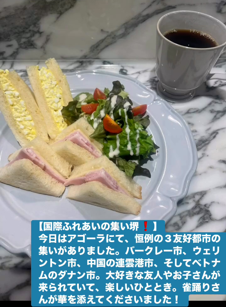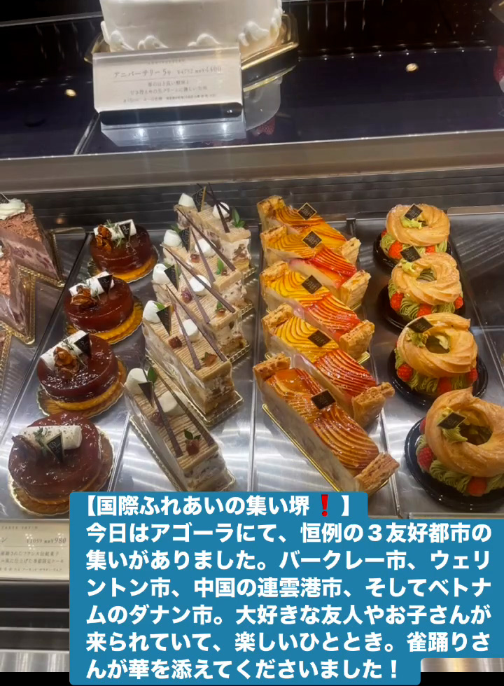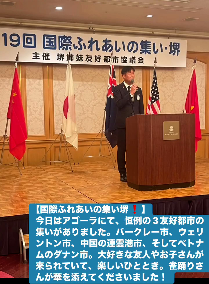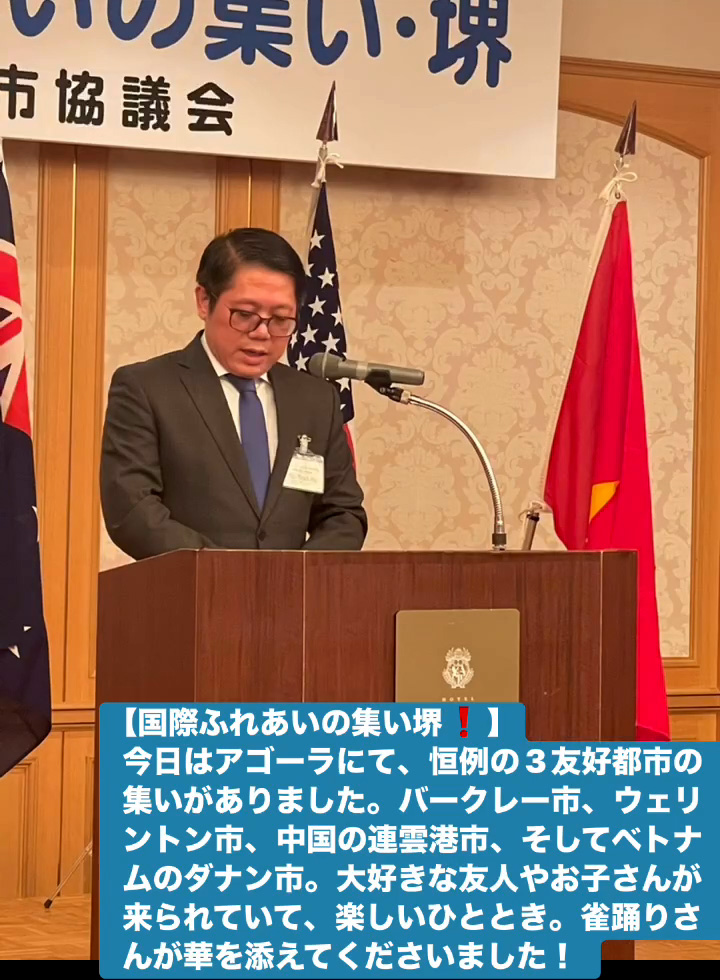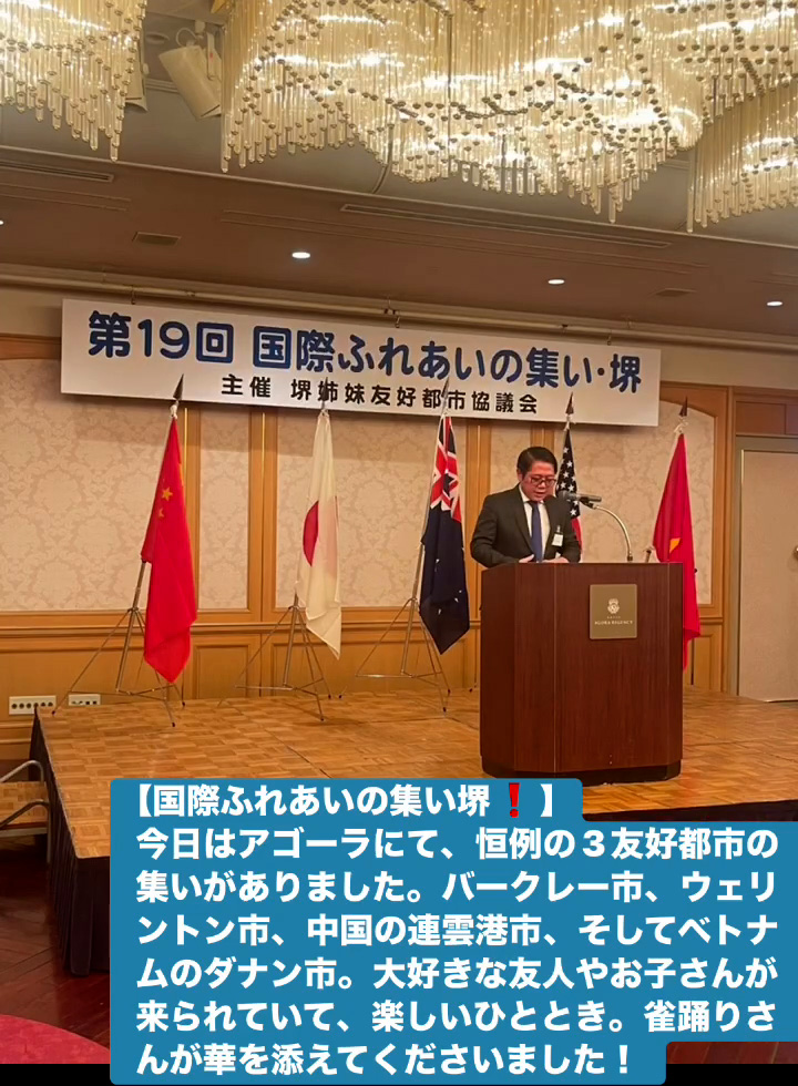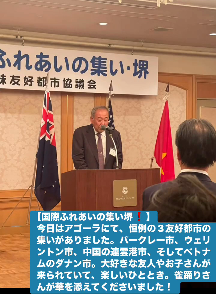 今日はアゴーラにて、恒例の3友好都市の集いがありました。バークレー市、ウェリントン市、中国の連雲港市、そしてベトナムのダナン市。大好きな友人やお子さんが来られていて、楽しいひととき。雀踊りさんが華を添えてくださいました!
