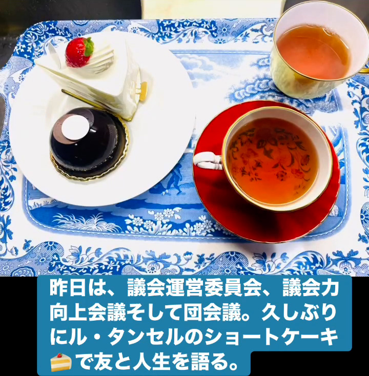昨日は、議会運営委員会、議会力向上会議そして団会議。久しぶりにル・タンセルのショートケーキ🍰で友と人生を語る。