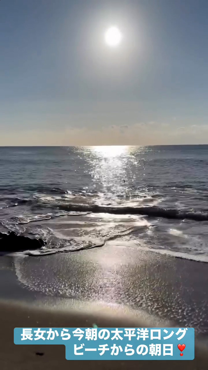 長女から今朝の太平洋ロングビーチからの朝日❣