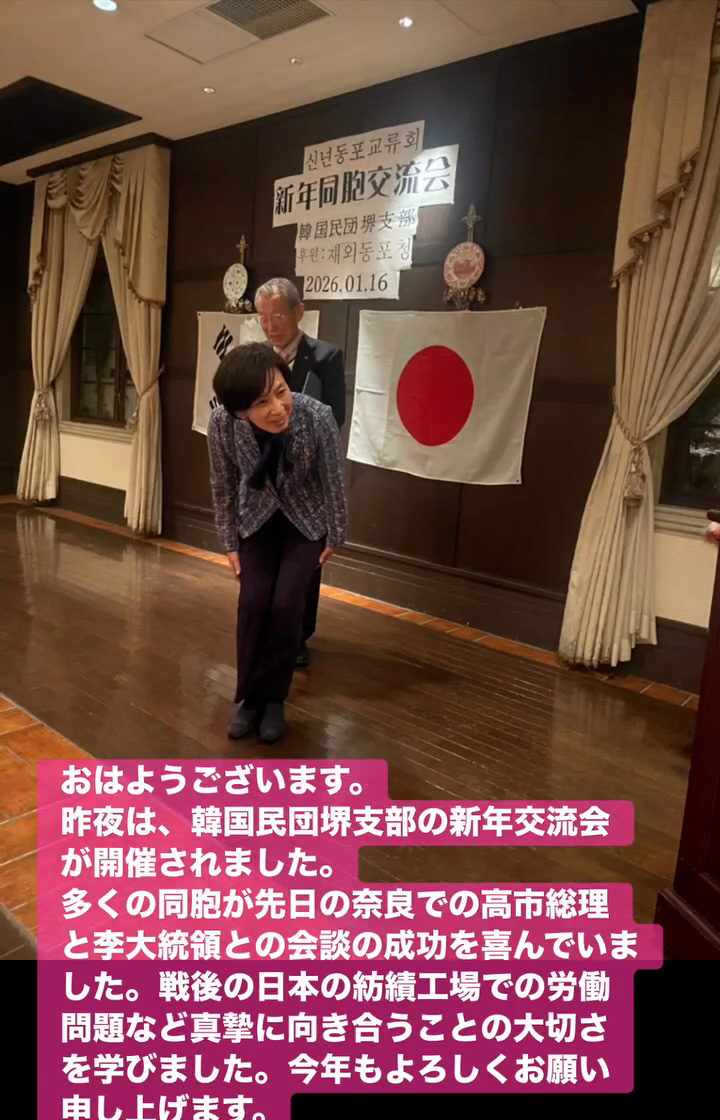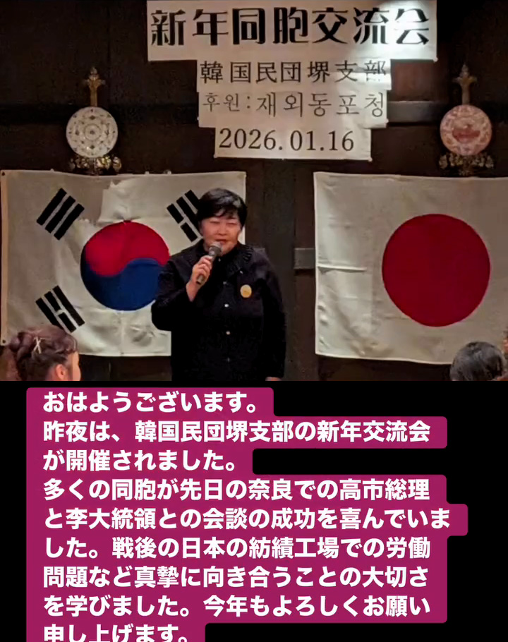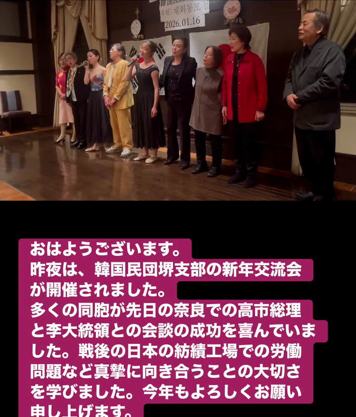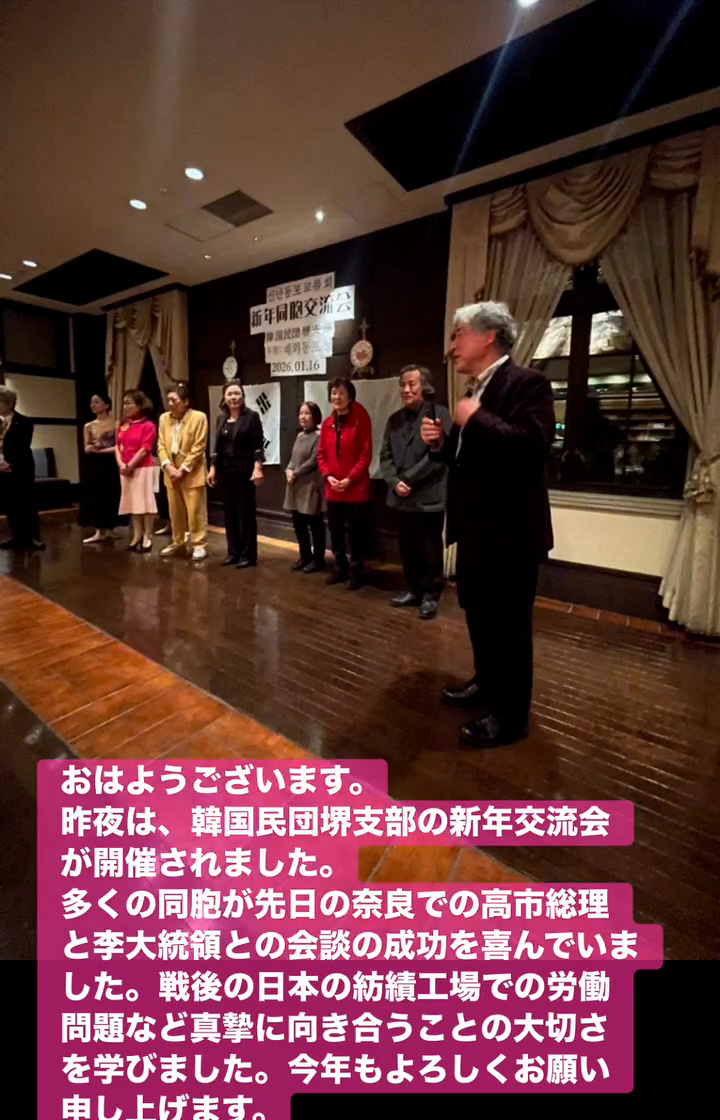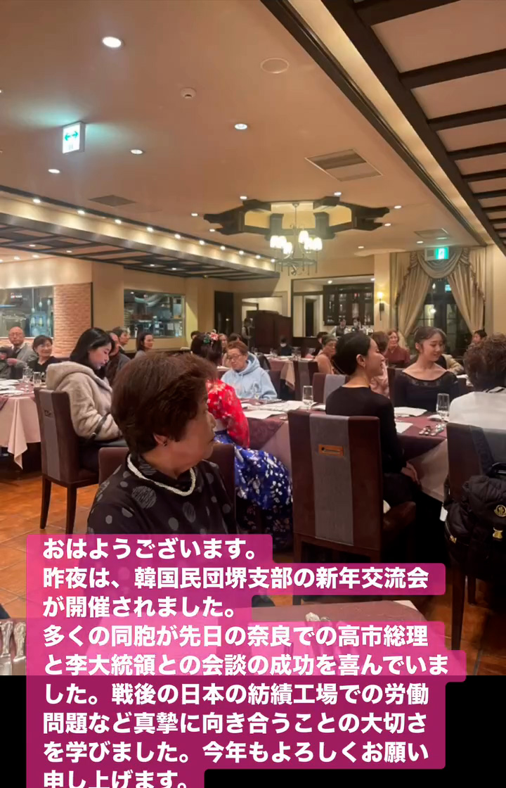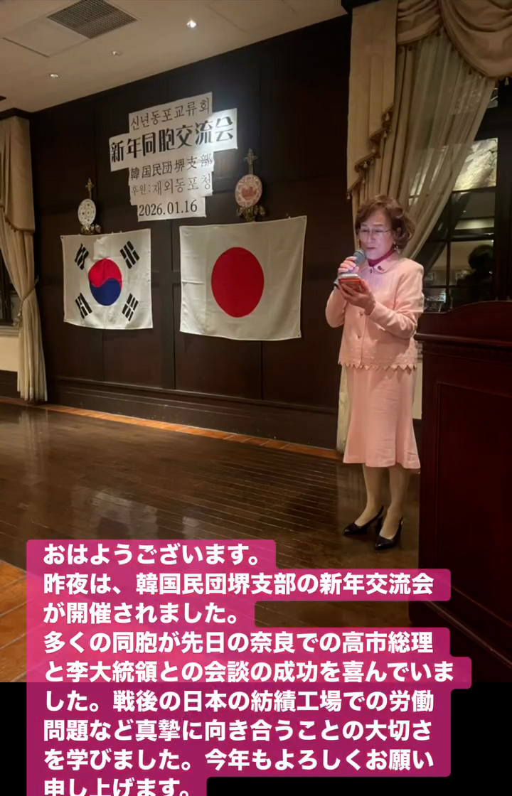 多くの同胞が先日の奈良での高市総理と李大統領との会談の成功を喜んでいました。戦後の日本の紡績工場での労働問題など真摯に向き合うことの大切さを学びました。今年もよろしくお願い申し上げます。