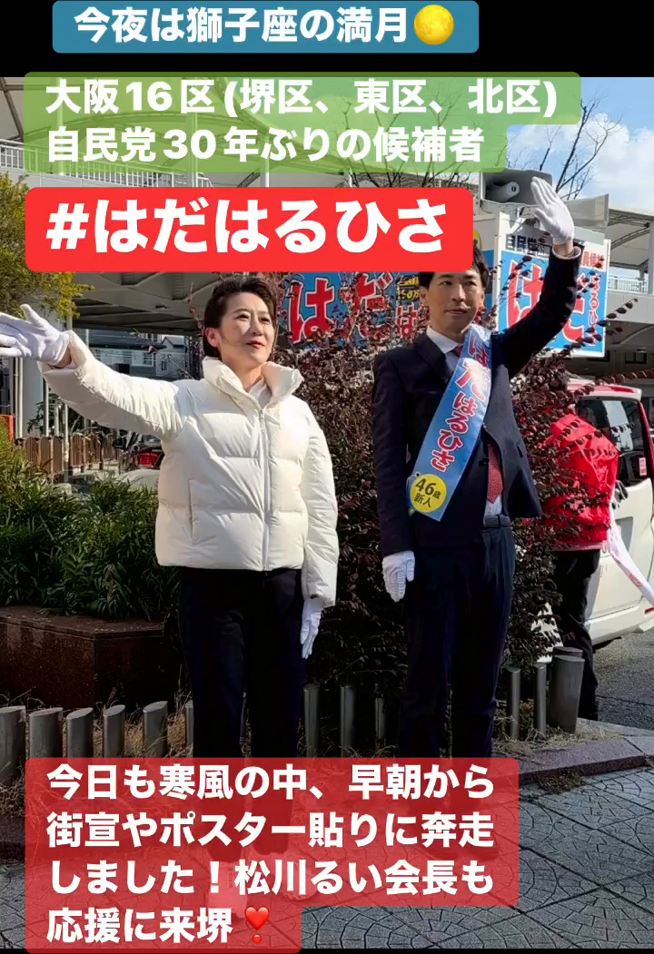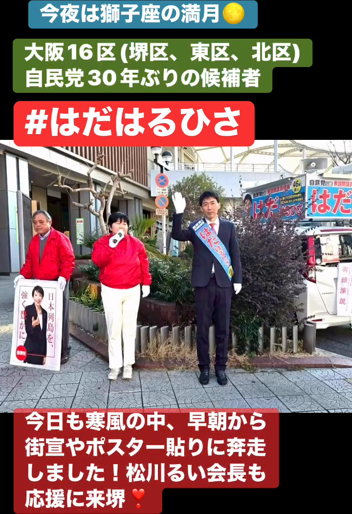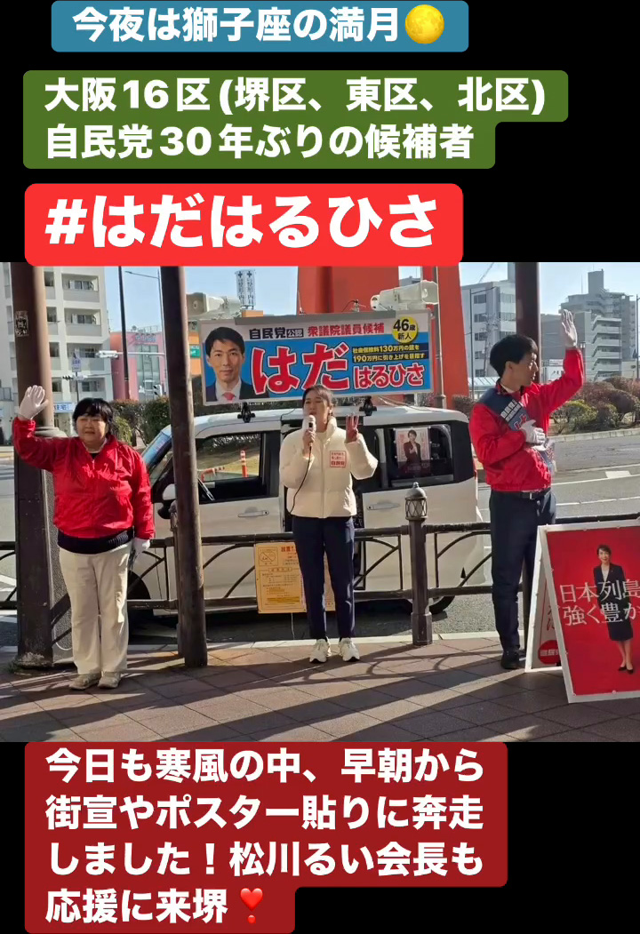 大阪16区(堺区、 東区、 北区)自民党30年ぶりの候補者 はだはるひさ。