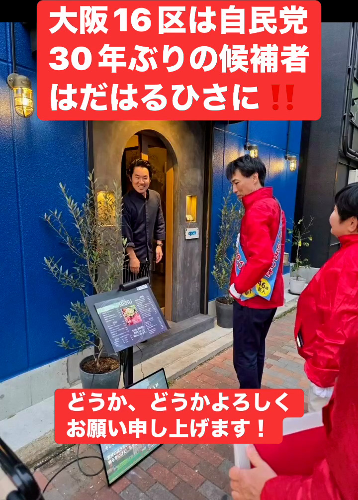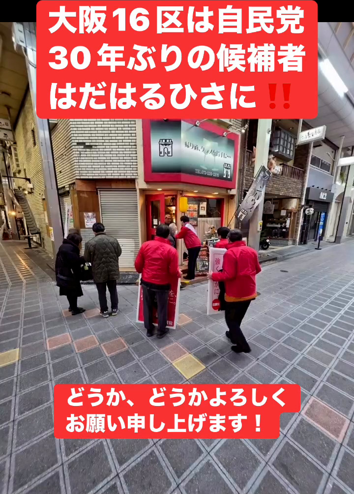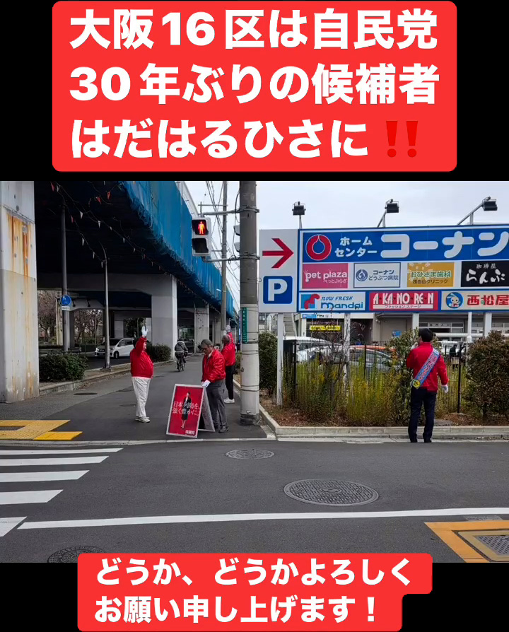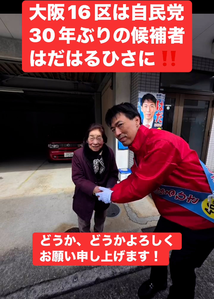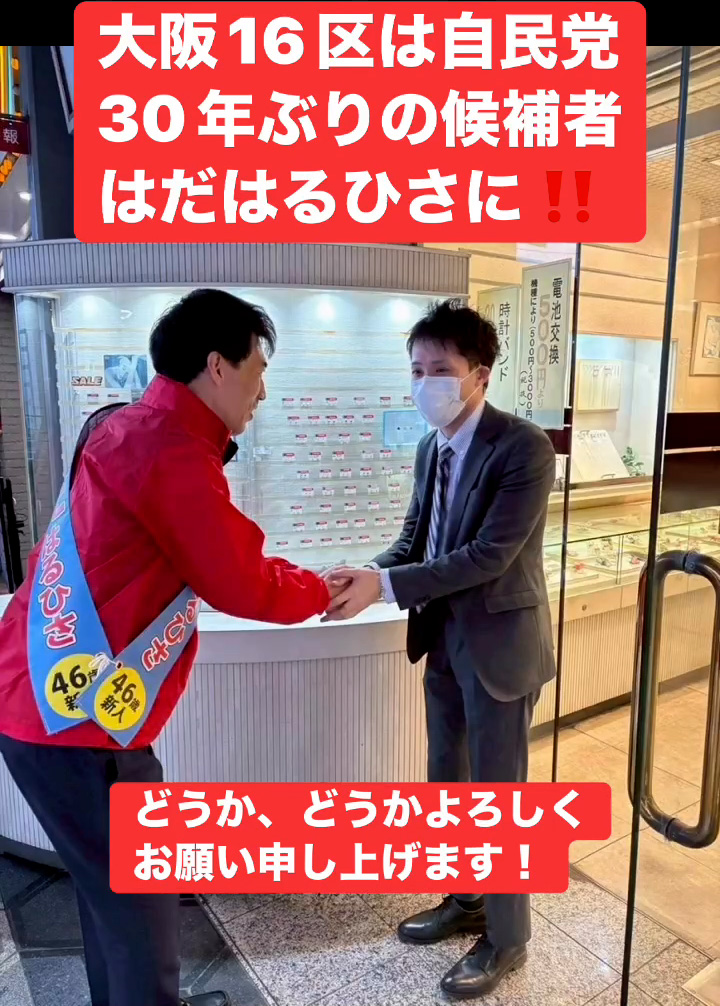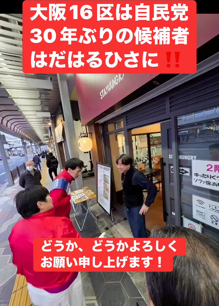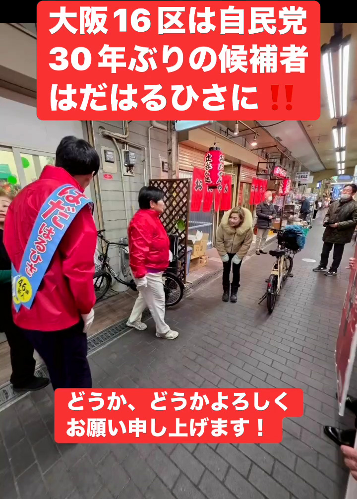 大阪16区は自民党30年ぶりの候補者はだはるひさにどうか、どうかよろしくお願い申し上げます!