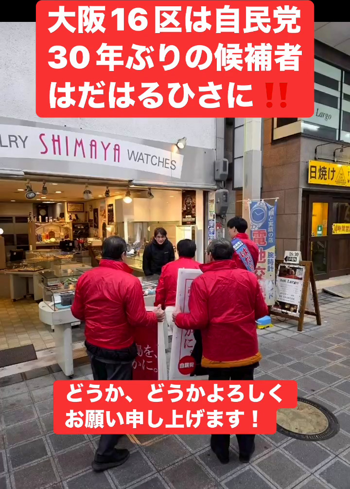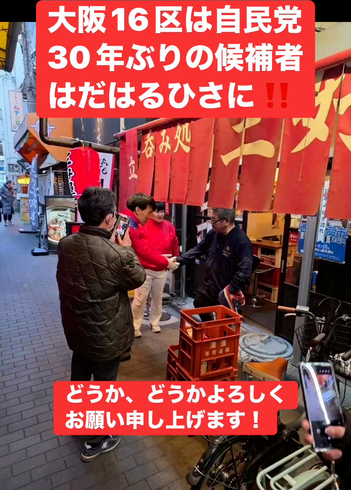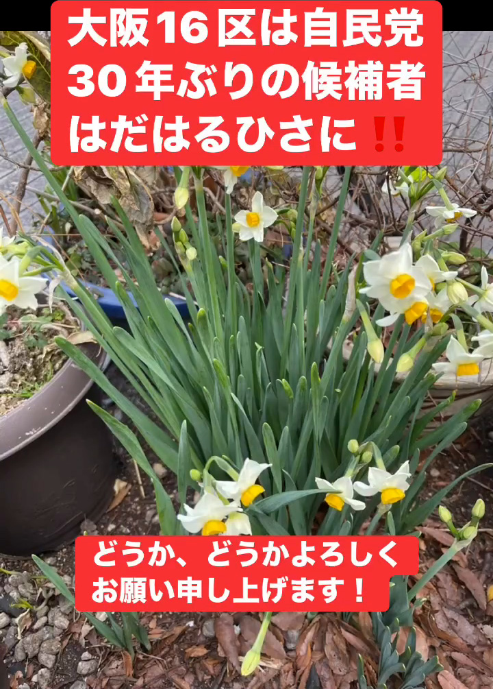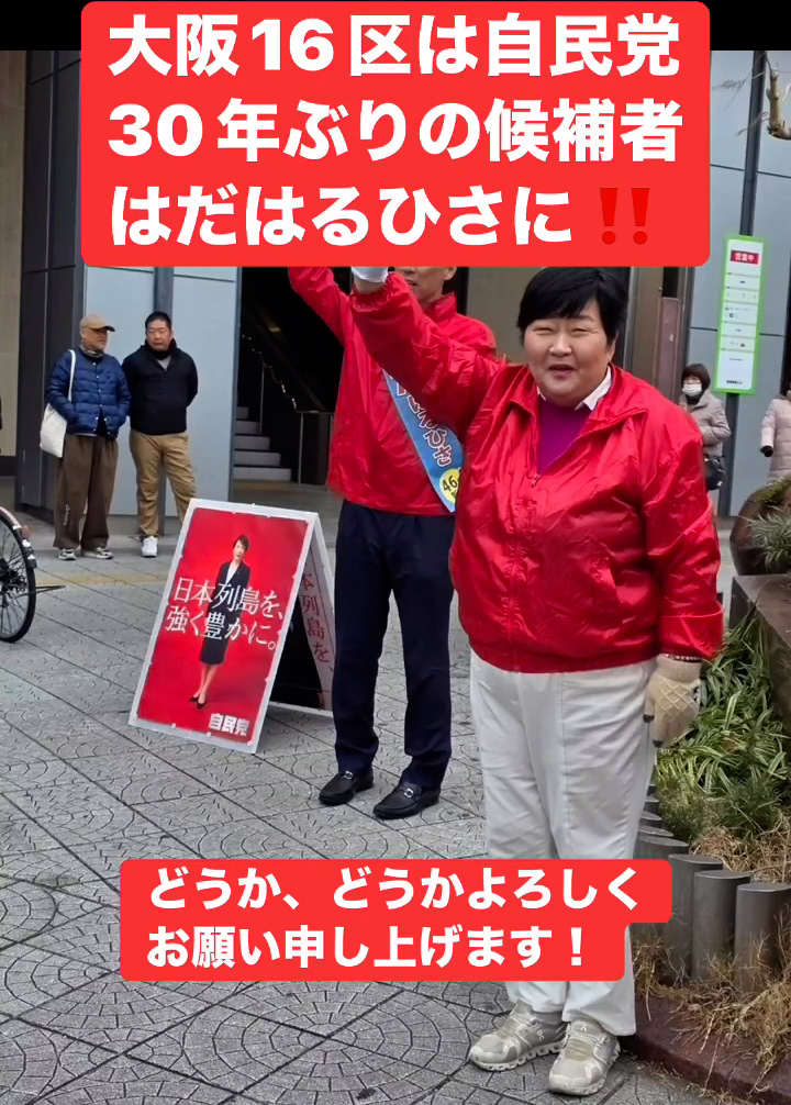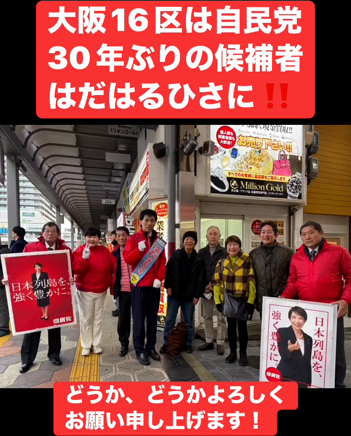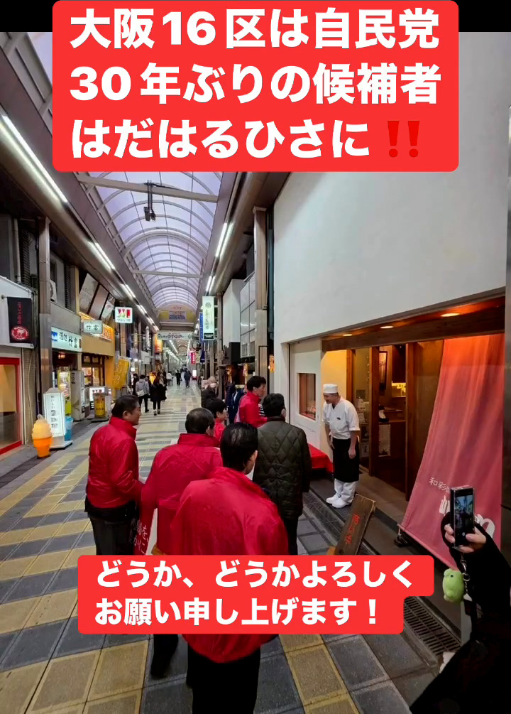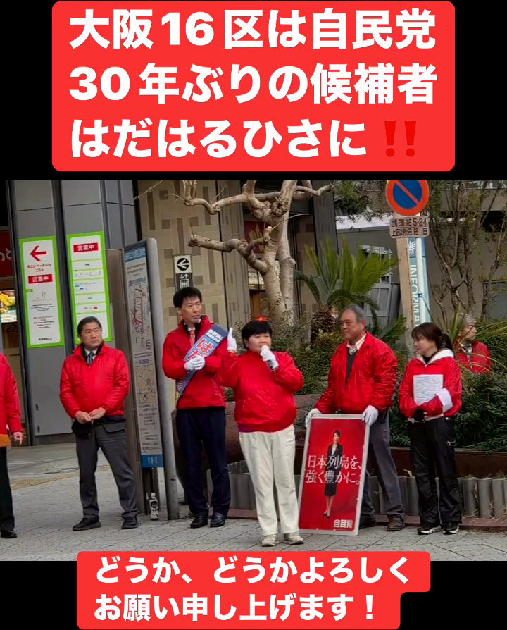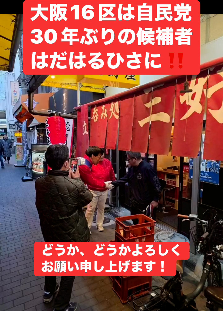 大阪16区は自民党30年ぶりの候補者はだはるひさにどうか、どうかよろしくお願い申し上げます!