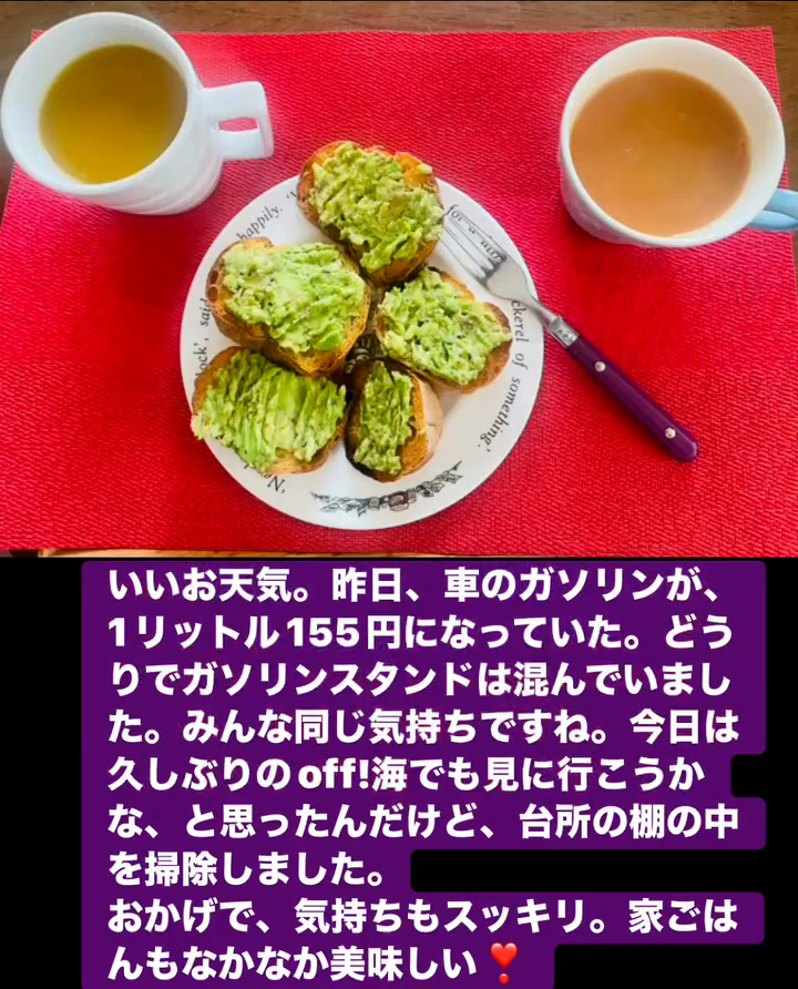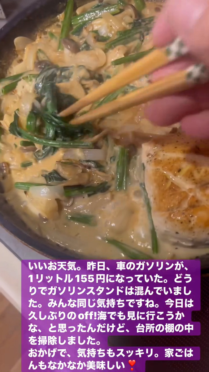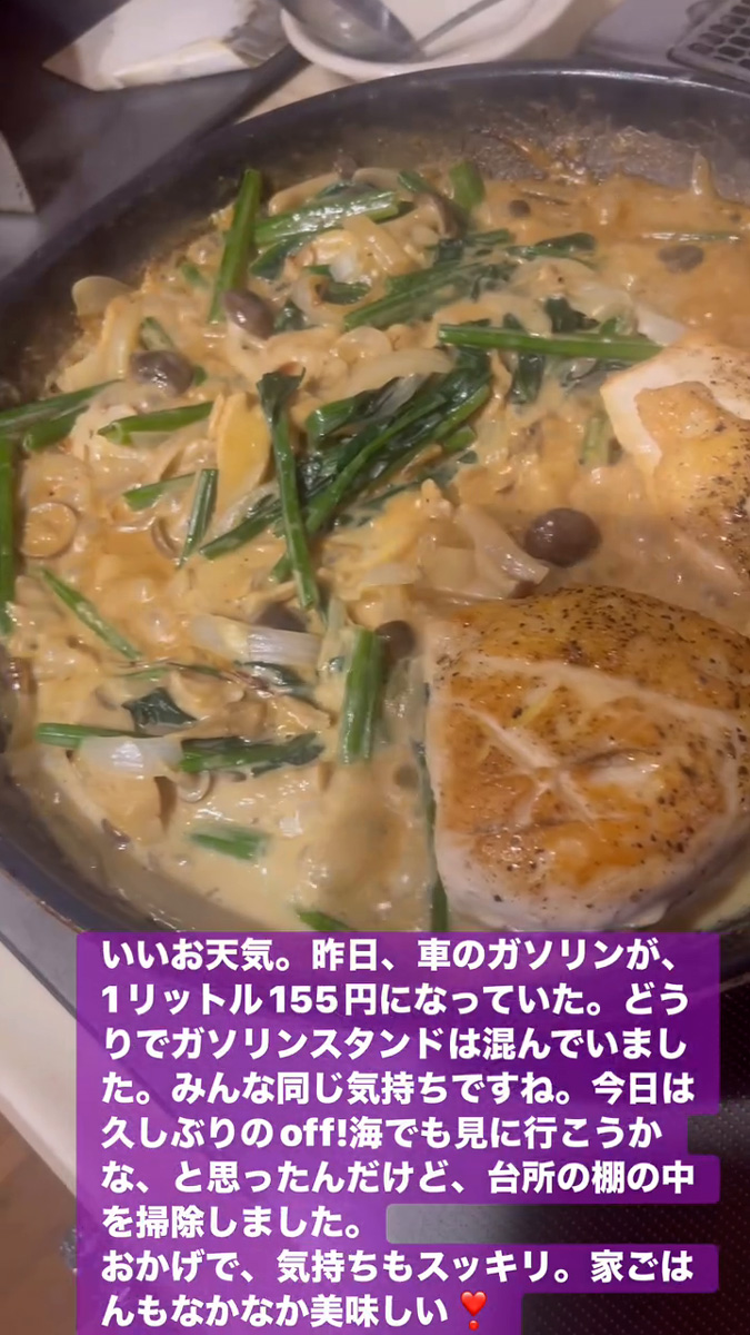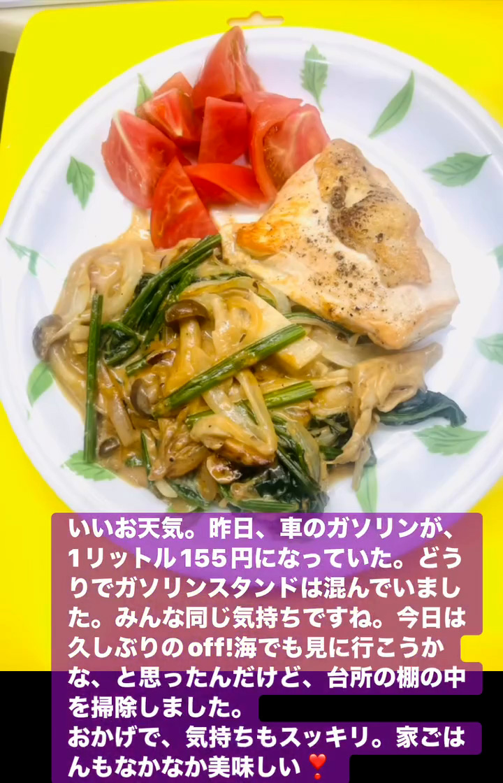 いいお天気 3月27日 Posted on 2026年3月27日 16:40:002026年3月27日 いいお天気。昨日、車のガソリンが、1リットル155円になっていた。どうりでガソリンスタンドは混んでいました。みんな同じ気持ちですね。 今日は久しぶりのoff!海でも見に行こうかな、と思ったんだけど、台所の棚の中を掃除しました。 おかげで、気持ちもスッキリ。家ごはんもなかなか美味しい❣ のりこの活動日記, のりこの部屋