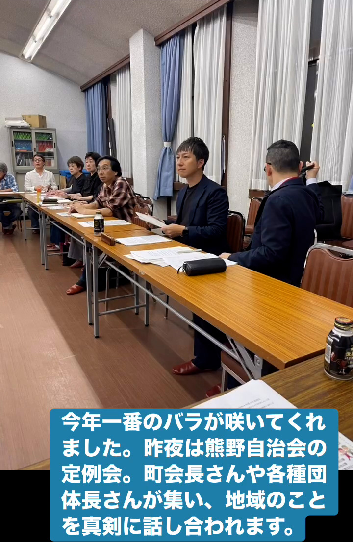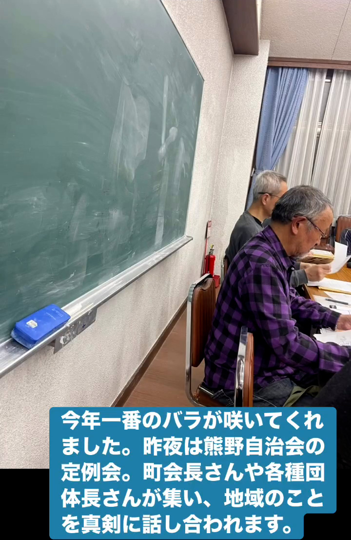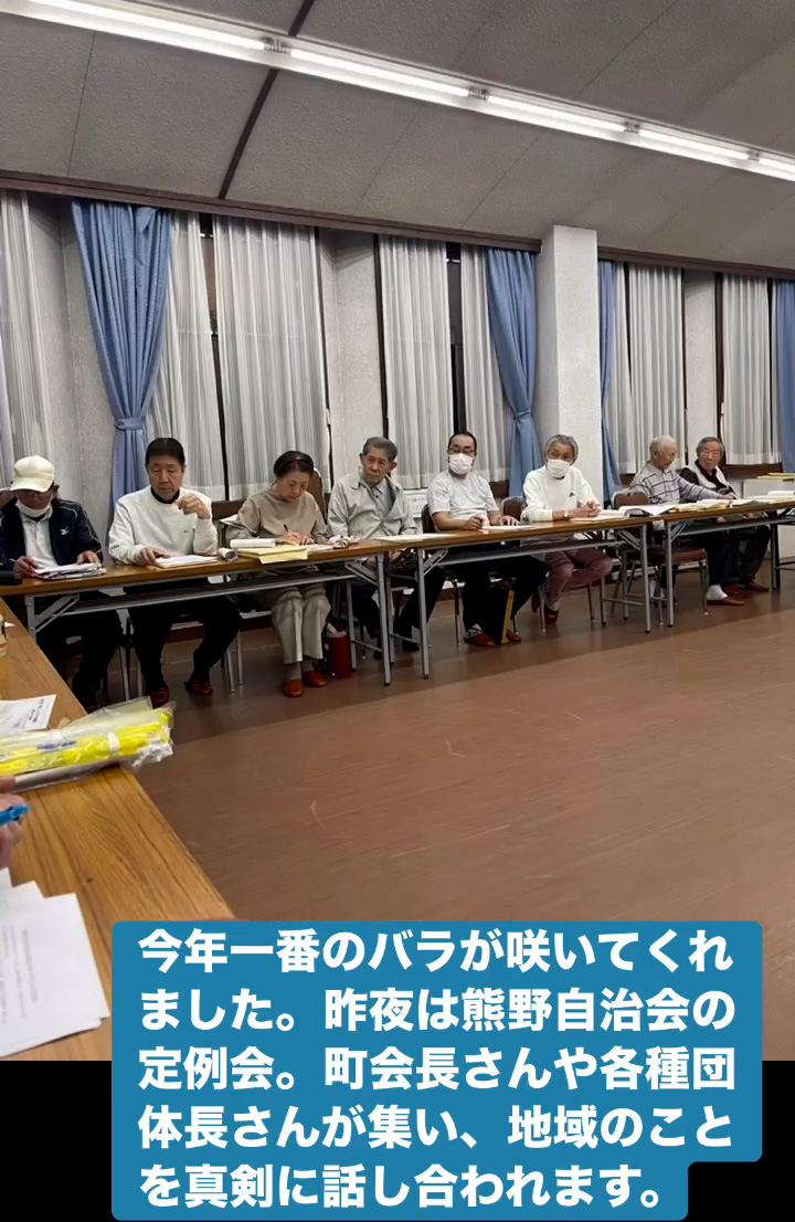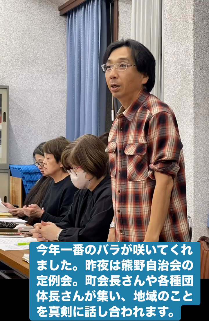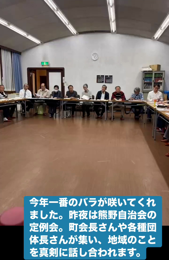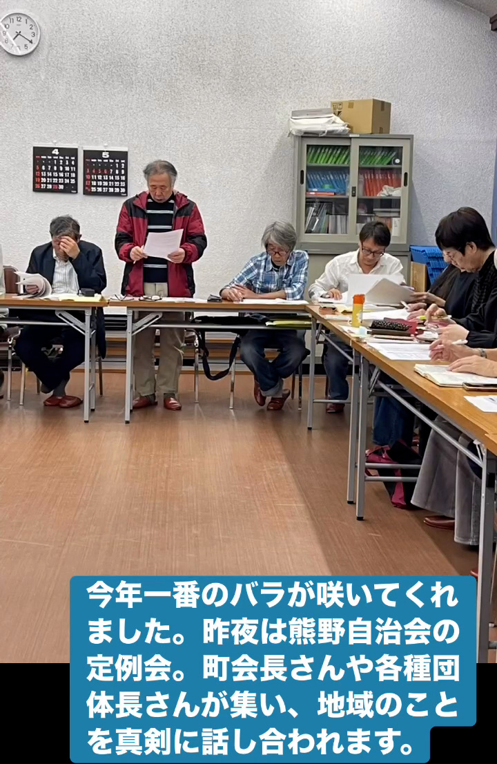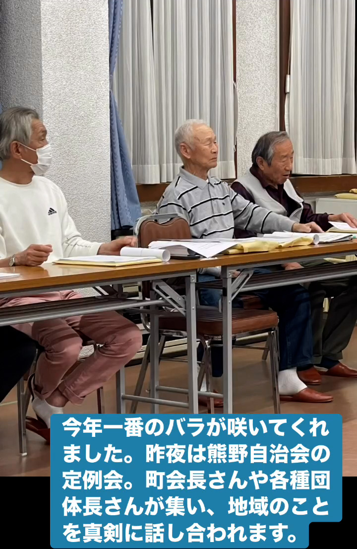今年一番のバラ 4月15日 Posted on 2026年4月15日 09:04:002026年4月15日 今年一番のバラが咲いてくれました。昨夜は熊野自治会の定例会。町会長さんや各種団体長さんが集い、地域のことを真剣に話し合われます。 のりこの活動日記