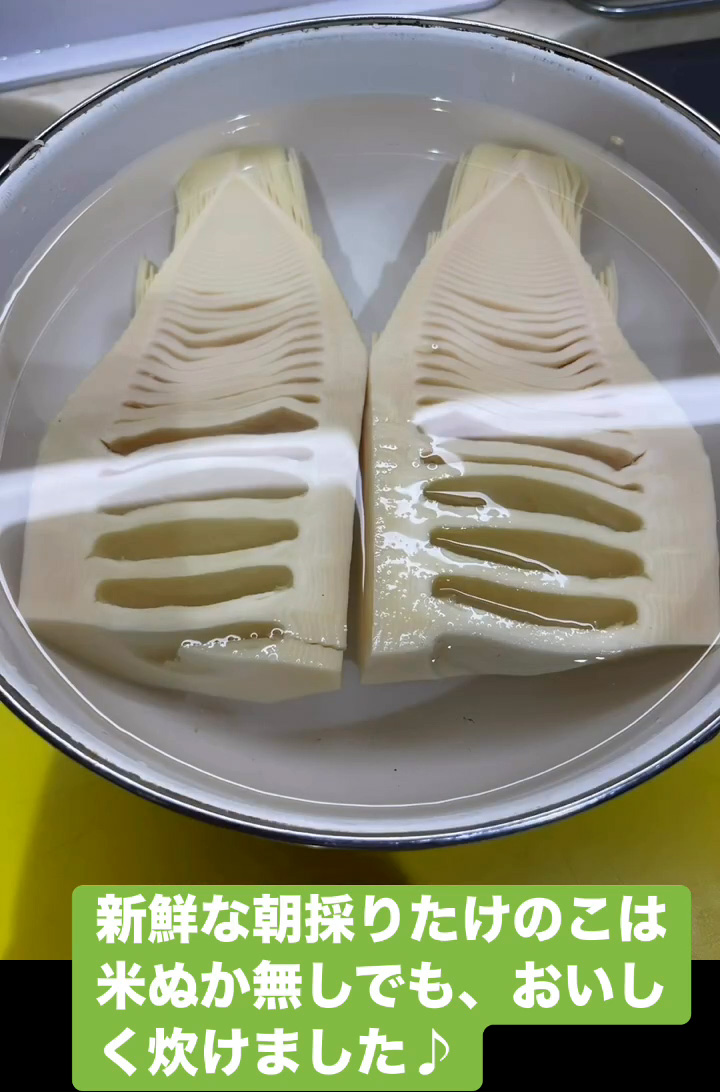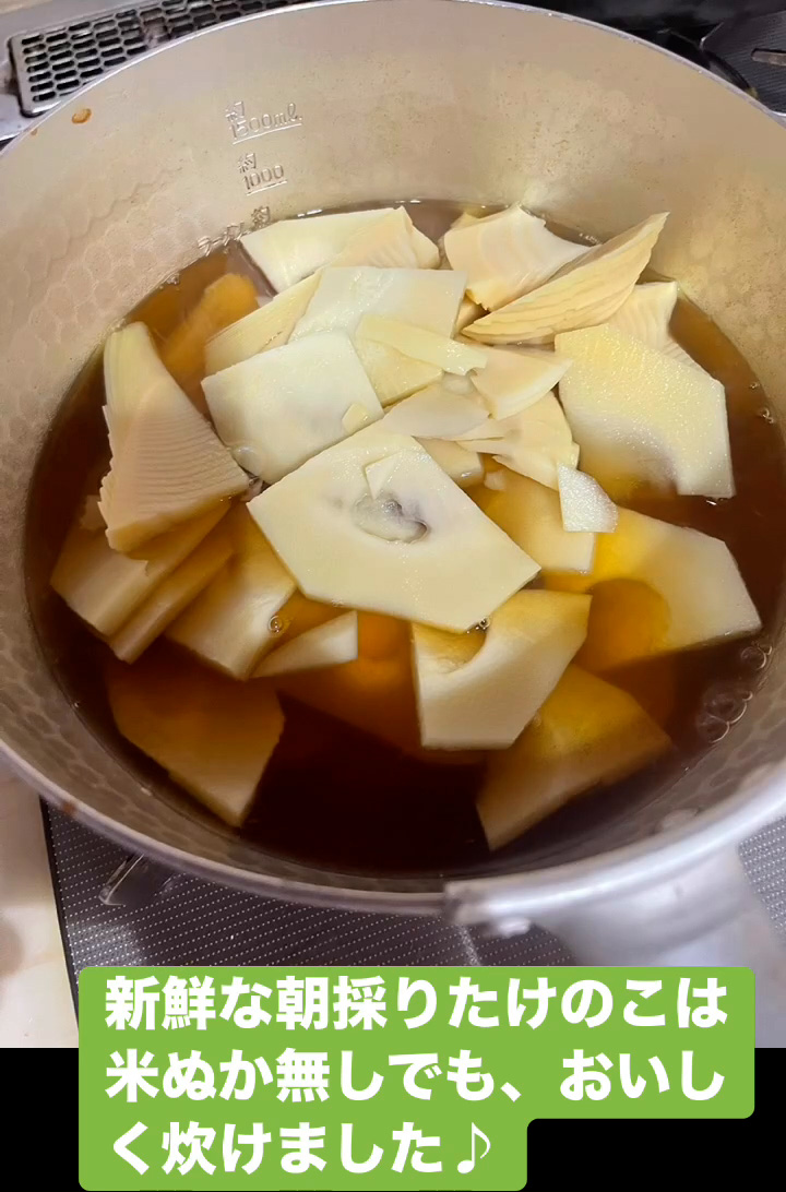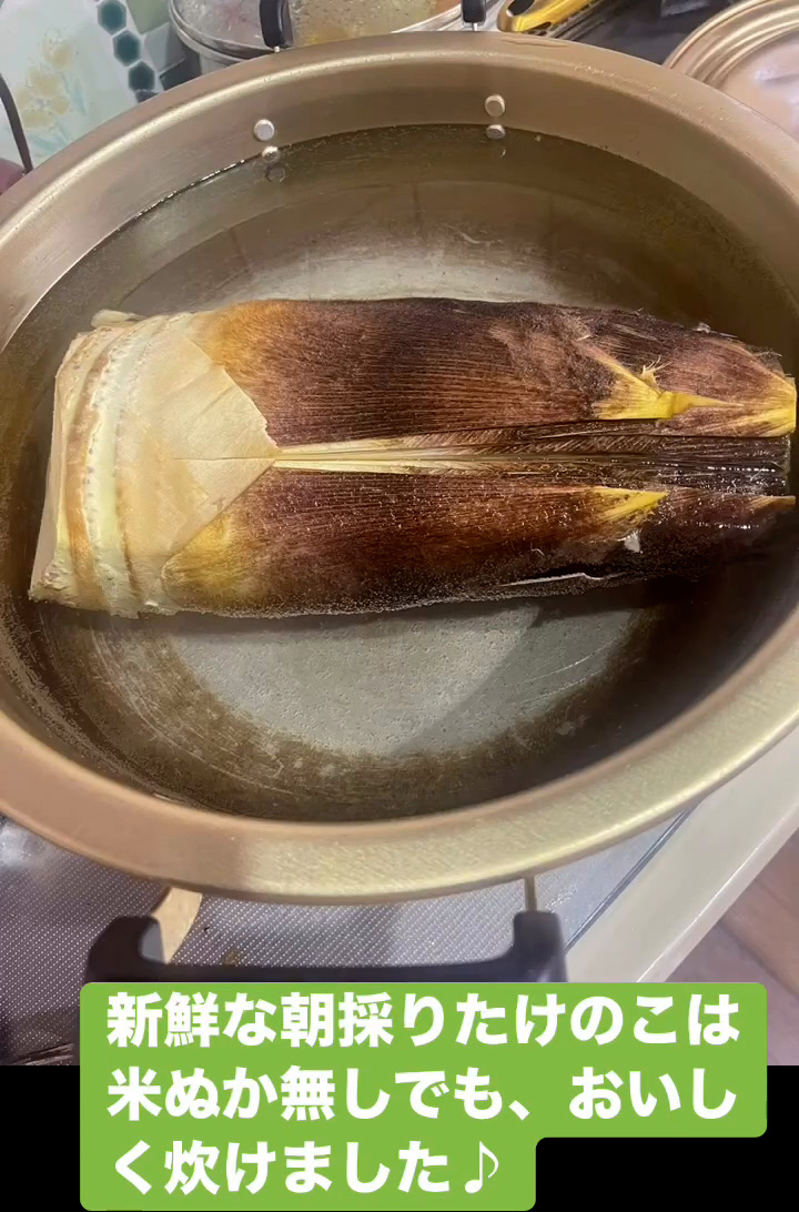 新鮮な朝採りたけのこは米ぬか無しでも、おいしく炊けました♪
