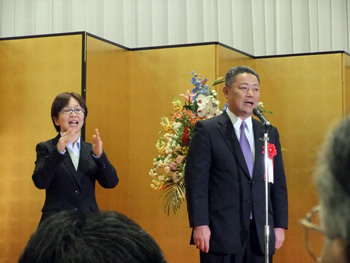 来賓を代表しての馬場議長のあいさつは原稿なしで、