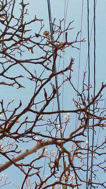 明るい陽射しの中で、我が家の木蓮を見上げると、